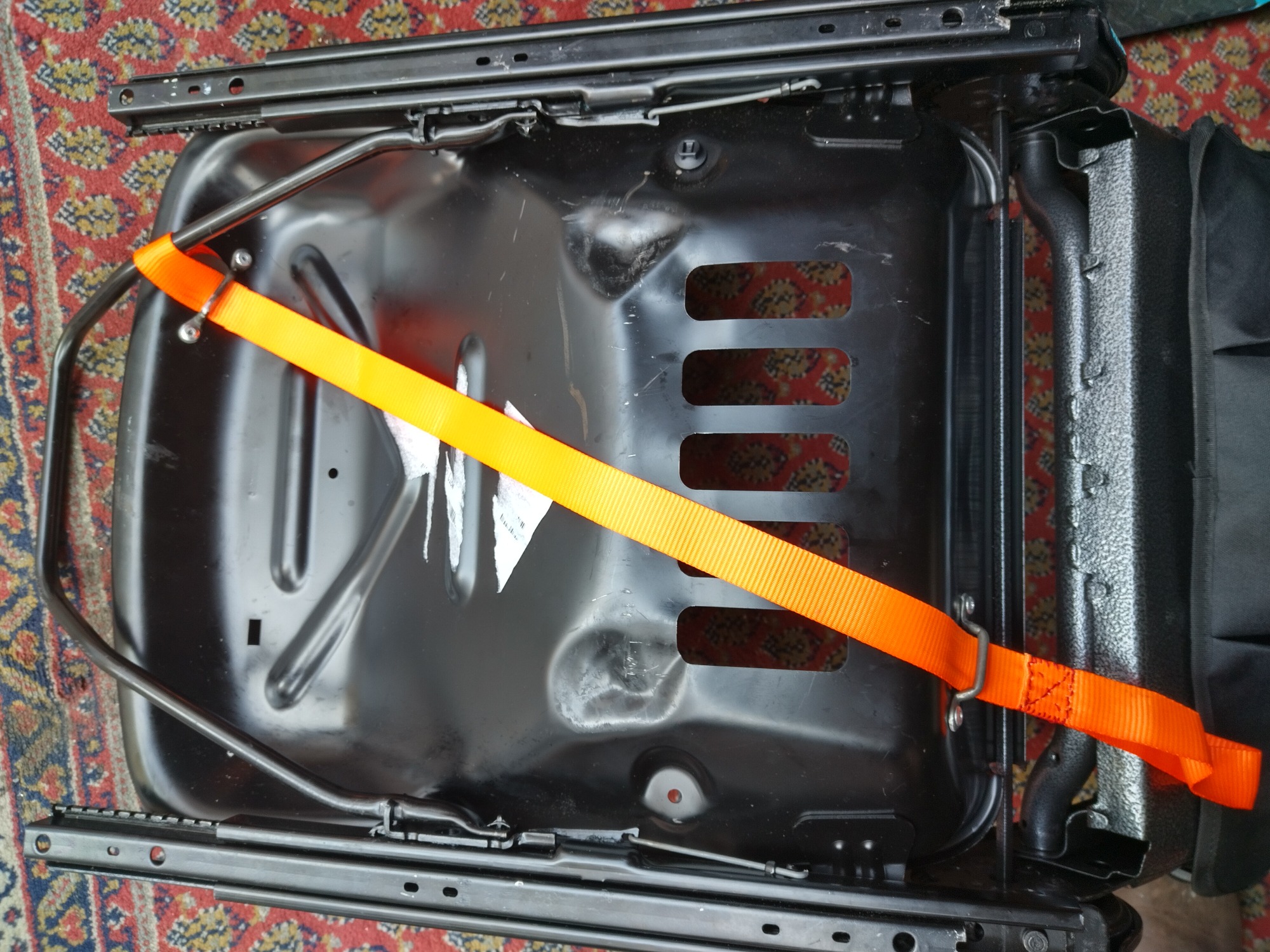 die kunstlederpelle hab ich auch vom beifahrer- zum fahrersitz (beifahrersitz war ein bisschen besser) getauscht, da man den fahrersitz durch das abschleifen der beiden anschlagnocken komplett nach vorne und nach hinten verstellen kann. (nützliches werkzeug zum pellewechseln als fotos)
