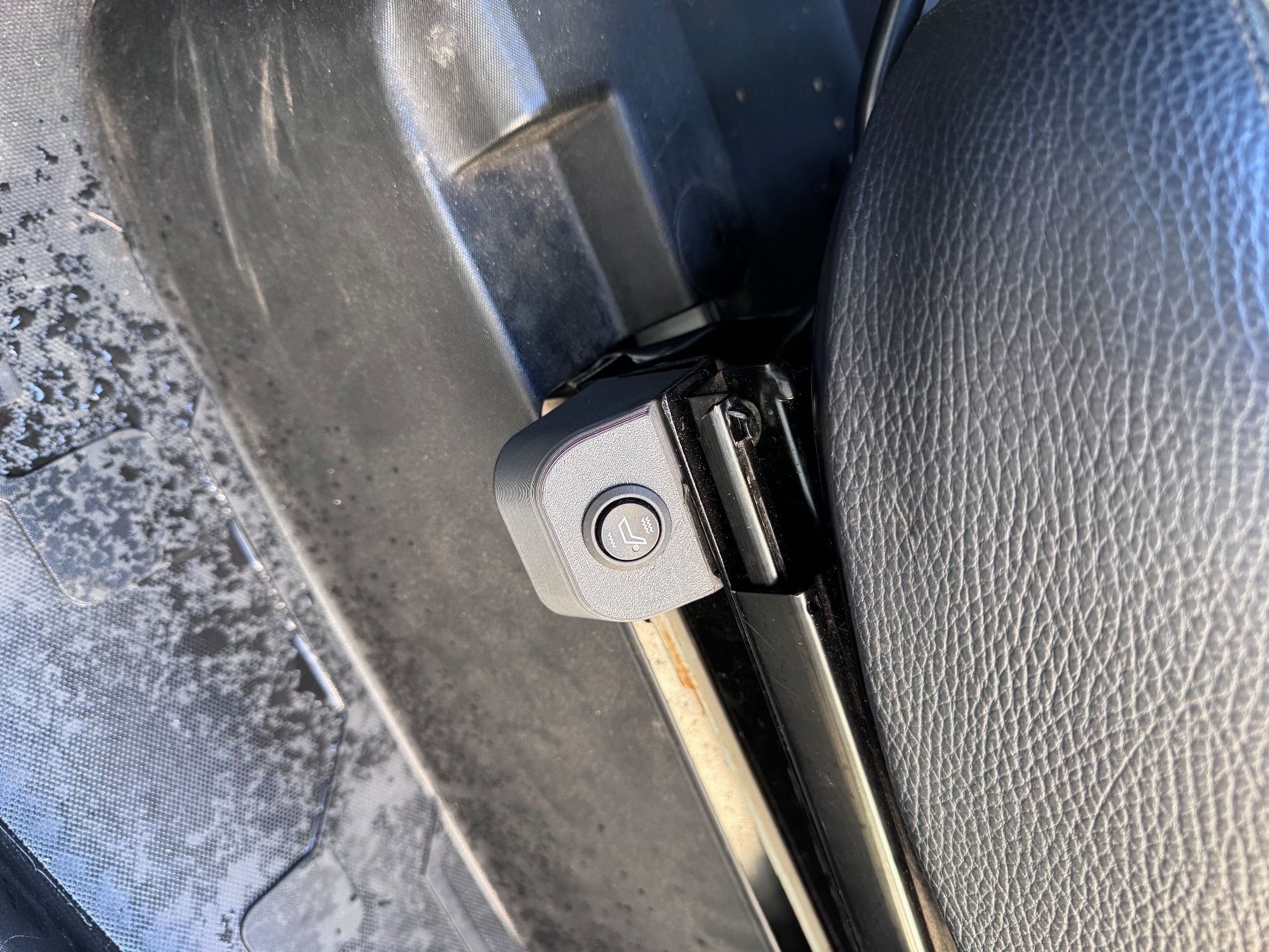 Die Box ist aus PLA und für ein ø20 Schalter der oft verwendet wird und kann gerne bei mir gekauft werden. Sie wird mit zwei 3M Extrastark an TwizyChrisy‘s Sitzschienen geklebt. Das Kabel geht nach hinten raus, also muss in die Schiene noch ein ø8 Loch gebohrt werden. Die Box soll incl. DHL 18€ kosten.