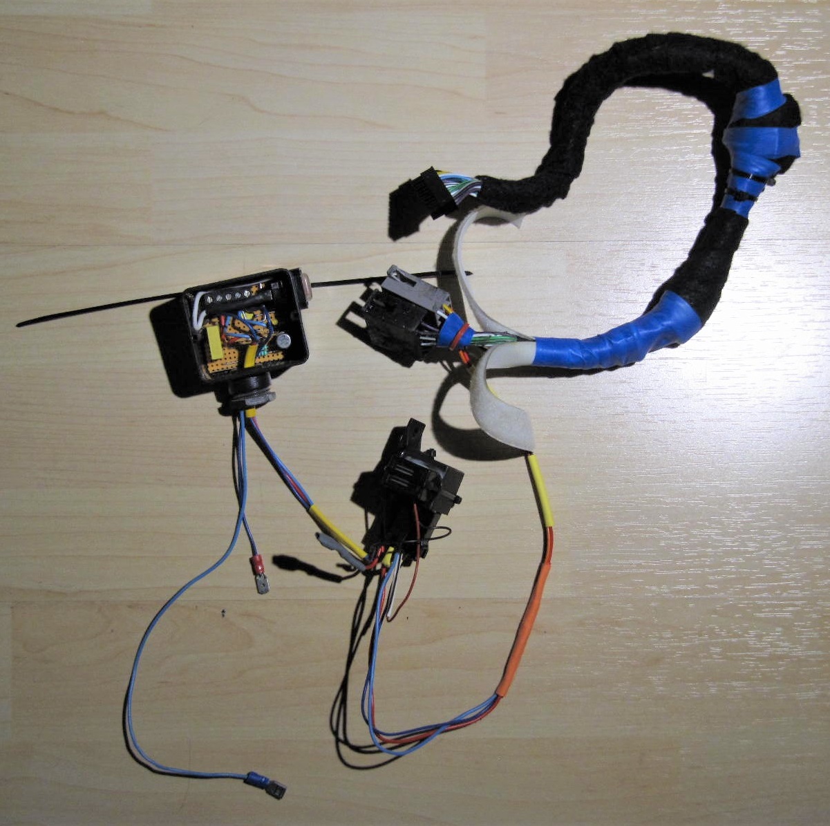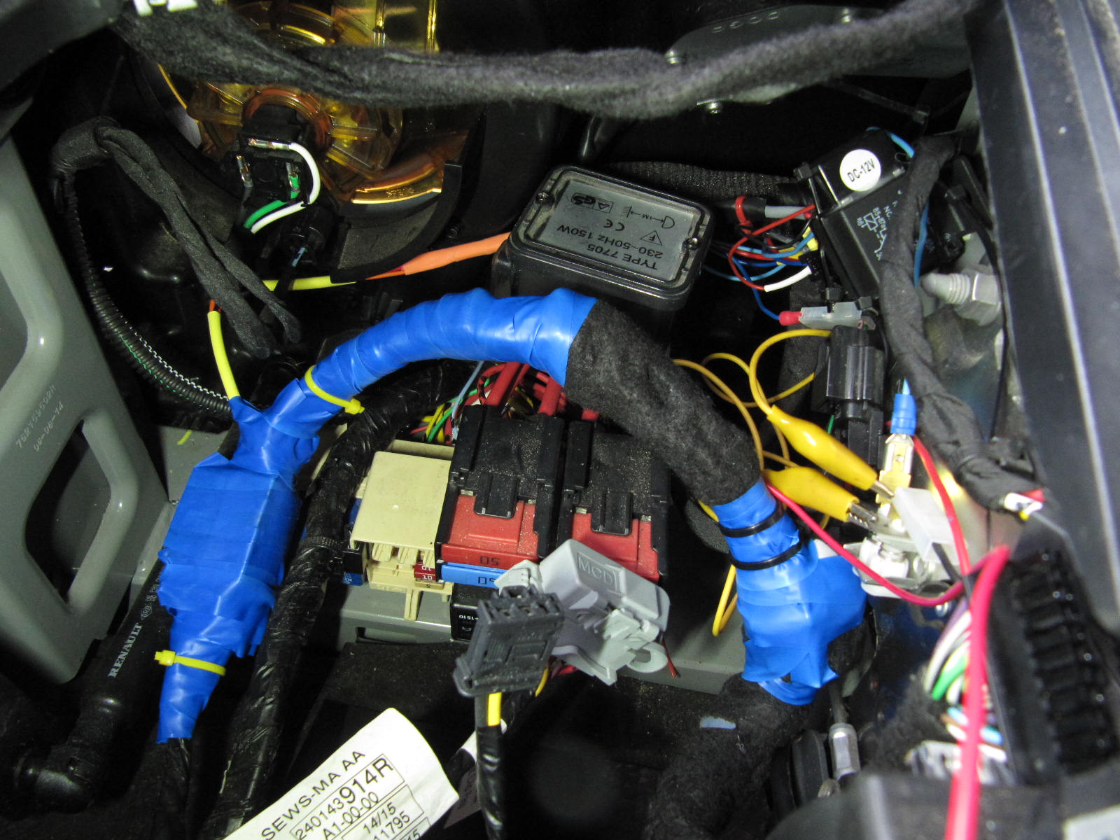Dann Handschuhfach mit Parrot BlueBox wieder rein, dabei von unten (durch die Öffnung beim Sicherungskasten) die Kabel verstaut.