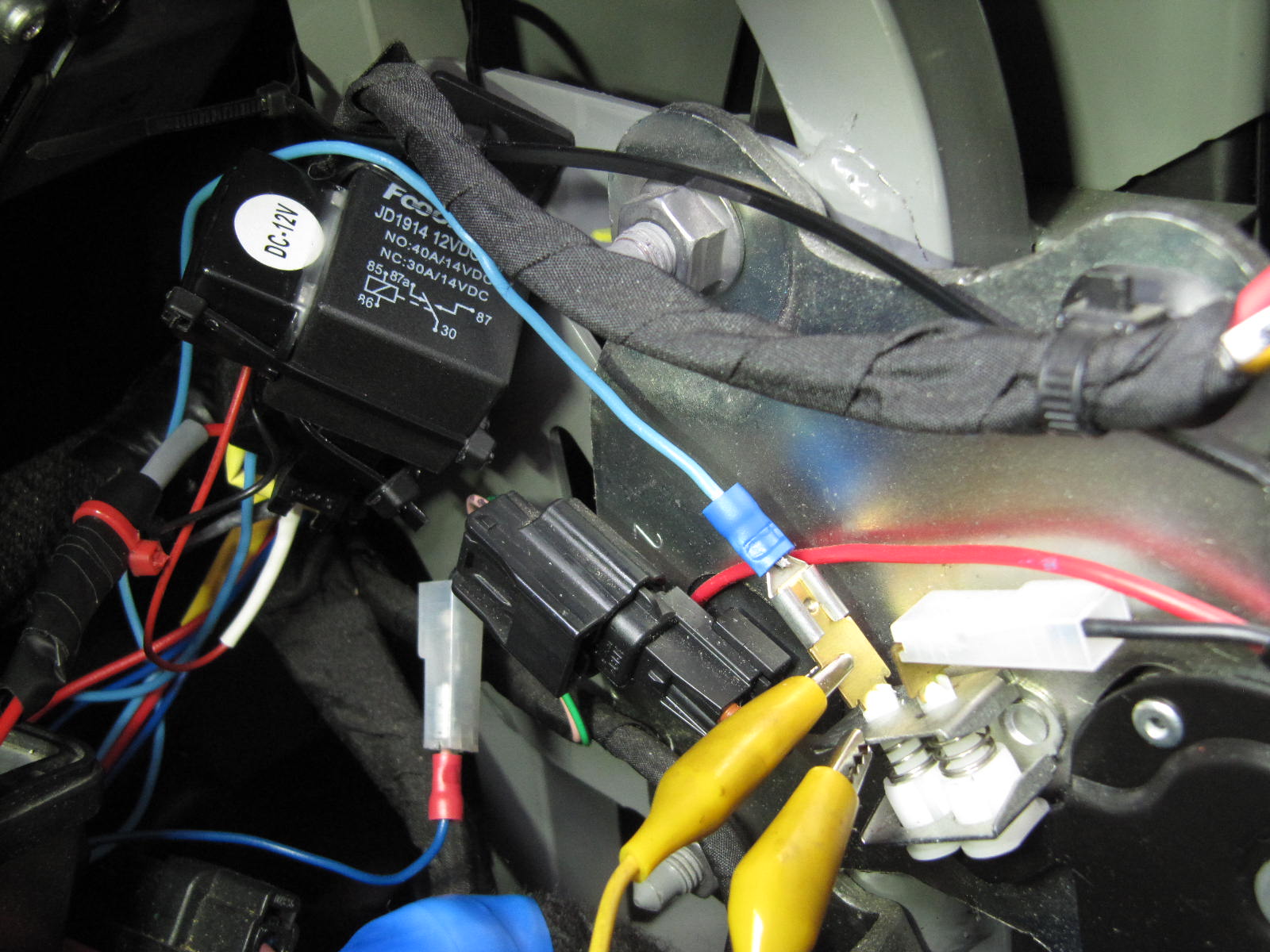 Das Relais hat gut in die Ecke unter den Motor des Scheibenwischers gepasst.