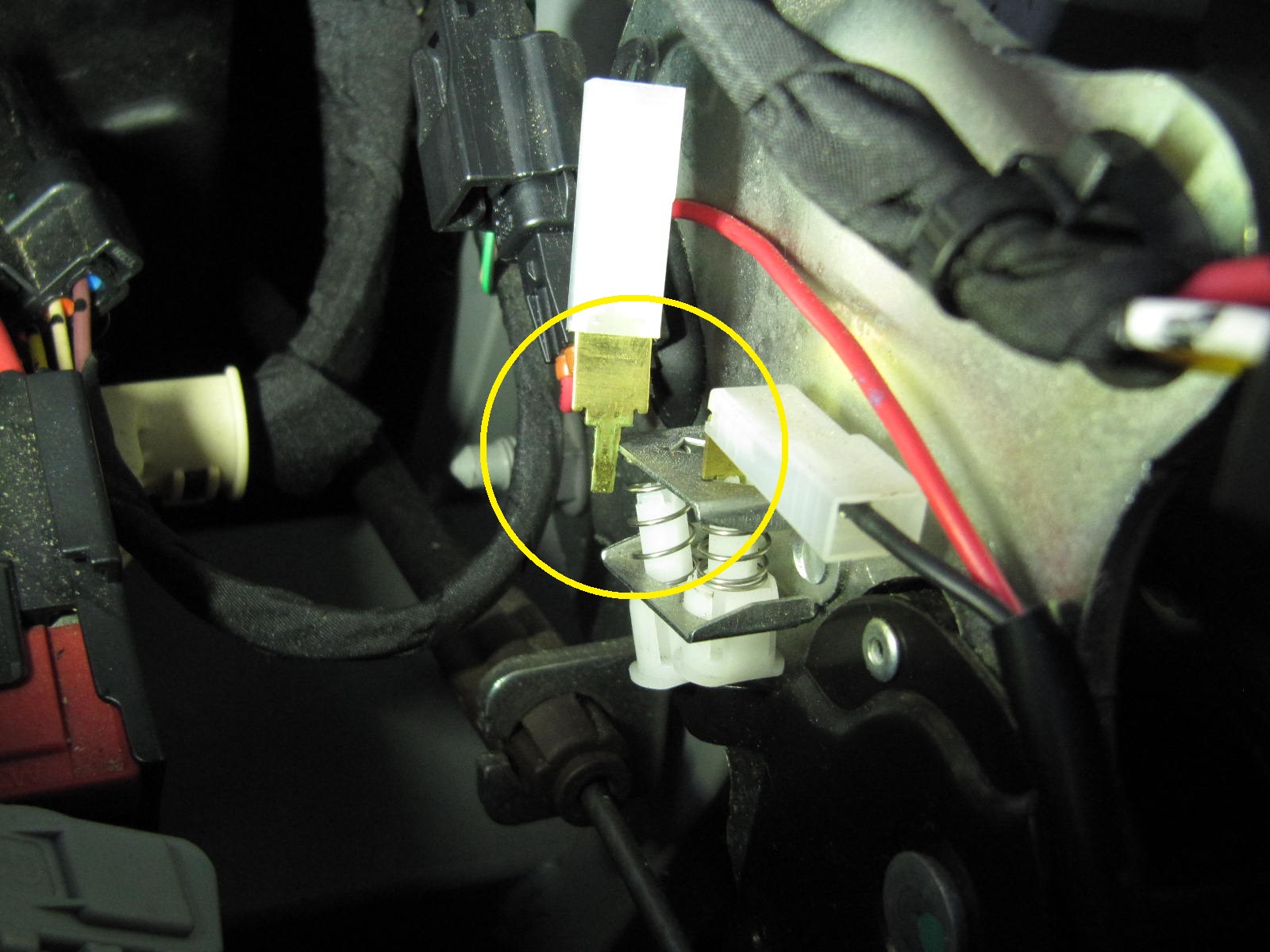 Kabel von Klemme 4 des Anschlußblocks führt auf den Handbremsschalter.