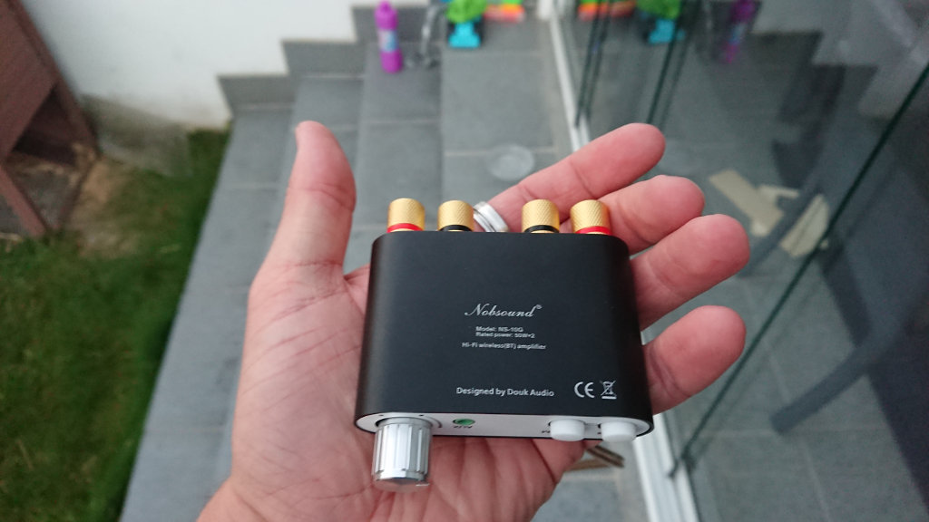 Der Verstärker ist wirklich winzig und passt prima in die Handfläche. Hat aber sogar Bananenterminals mit vergoldeten Kontakten. Da es ein digitaler Class D Verstärker ist, ist entwickelt er nicht so eine Wärme. Die Bluetoothkopplung ist problemlos. Gerät auswählen, wird gekoppelt, fertig. Vorne ist noch eine AUX Buchse, wo man bei Bedarf noch ein beliebiges Radio nachrüsten kann (z.B. UKW oder DAB+, damit ist man flexibel).