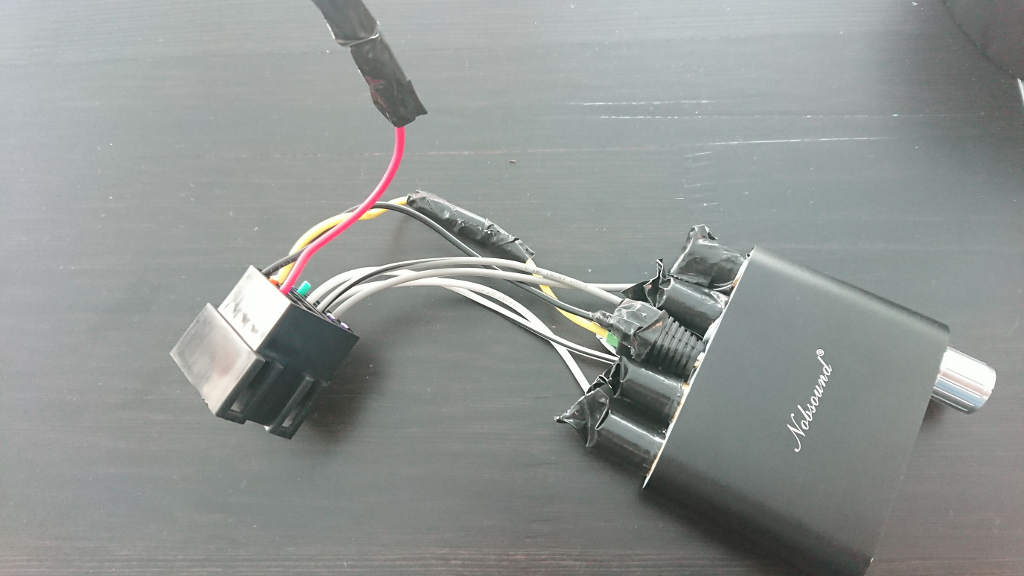 Den Verstärker habe ich dann an das ISO-Kabel angeschlossen. Ich habe die Stromversorgung an Klemme 15 gehängt, damit der Verstärker auch aus ist, wenn das Fahrzeug aus ist. Die Klemme 30 habe ich aber für alle Fälle nicht abgeknipst. Danach habe ich alles mit Isolierband abgeklebt, damit es nicht aus Versehen zu einem Kurzschluss kommt.