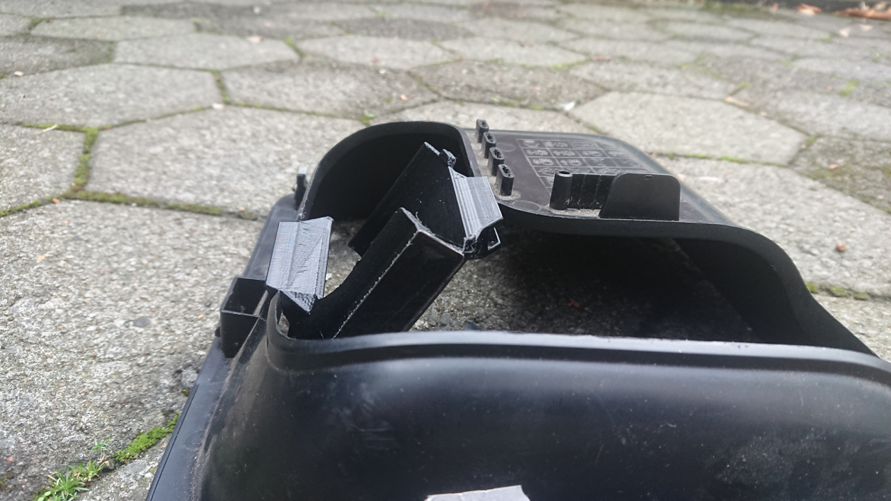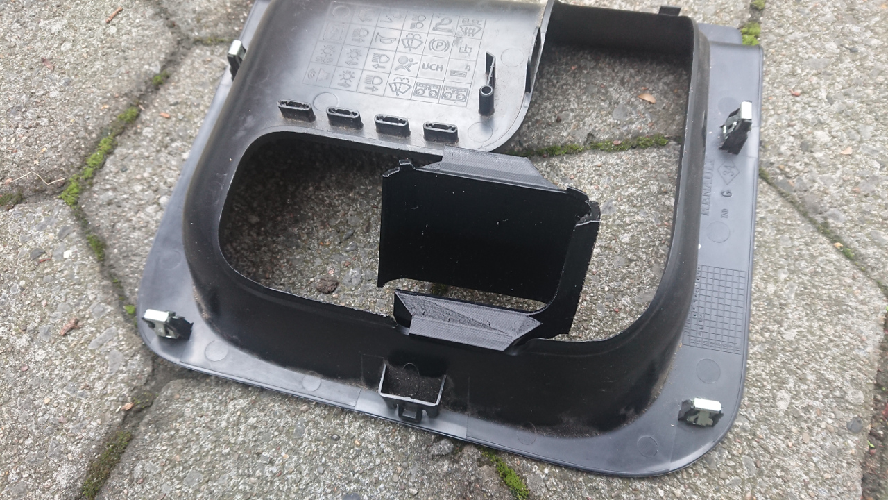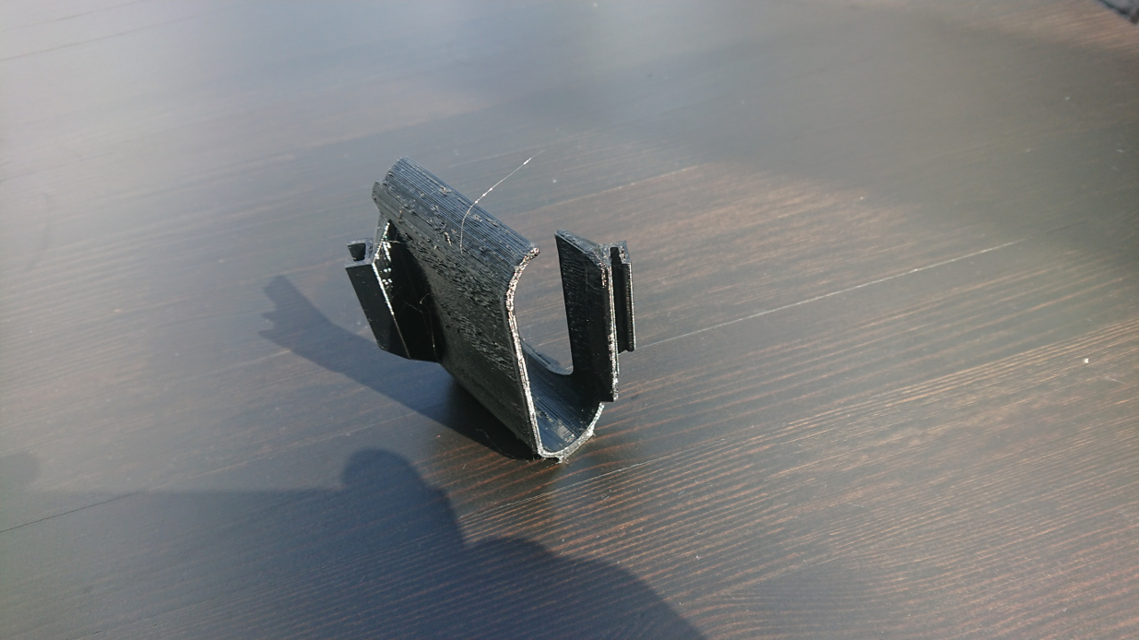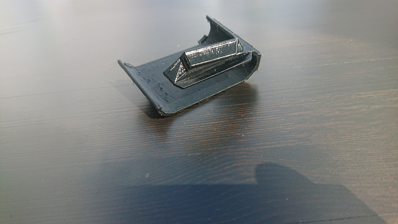 Wer einen 3D Drucker hat, kann sich das Ganze selber nachdrucken. Ich habe es mit schwarzem PETG gedruckt, da sich in meinem Auto ein Teil aus PLA schon mal bei Hitzeeinfluss ziemlich verbogen hat. Das wird im Twizy nicht so schlimm sein, da er offen ist und gar nicht so heiß wird, aber man weiß ja nie. Warum das Teil so eine merkwürdige Form hat? Zum einen: Ich hatte es erst mit einem geschlossenen Teil um den Verstärker versucht. Das war aber zu eng und ist gebrochen. Dann habe ich es direkt offen designed. Da es eingeklemmt wird hält es auch echt gut. Zum anderen kann ein 3D Drucker nur überhänge bis 45 Grad drucken. Für alles andere braucht er Stützstrukturen. Und die können mitunter ziemlich fies beim entfernen sein. Also versuche ich Teile immer so zu designen, dass sie nicht auf Stützstrukturen angewiesen sind.