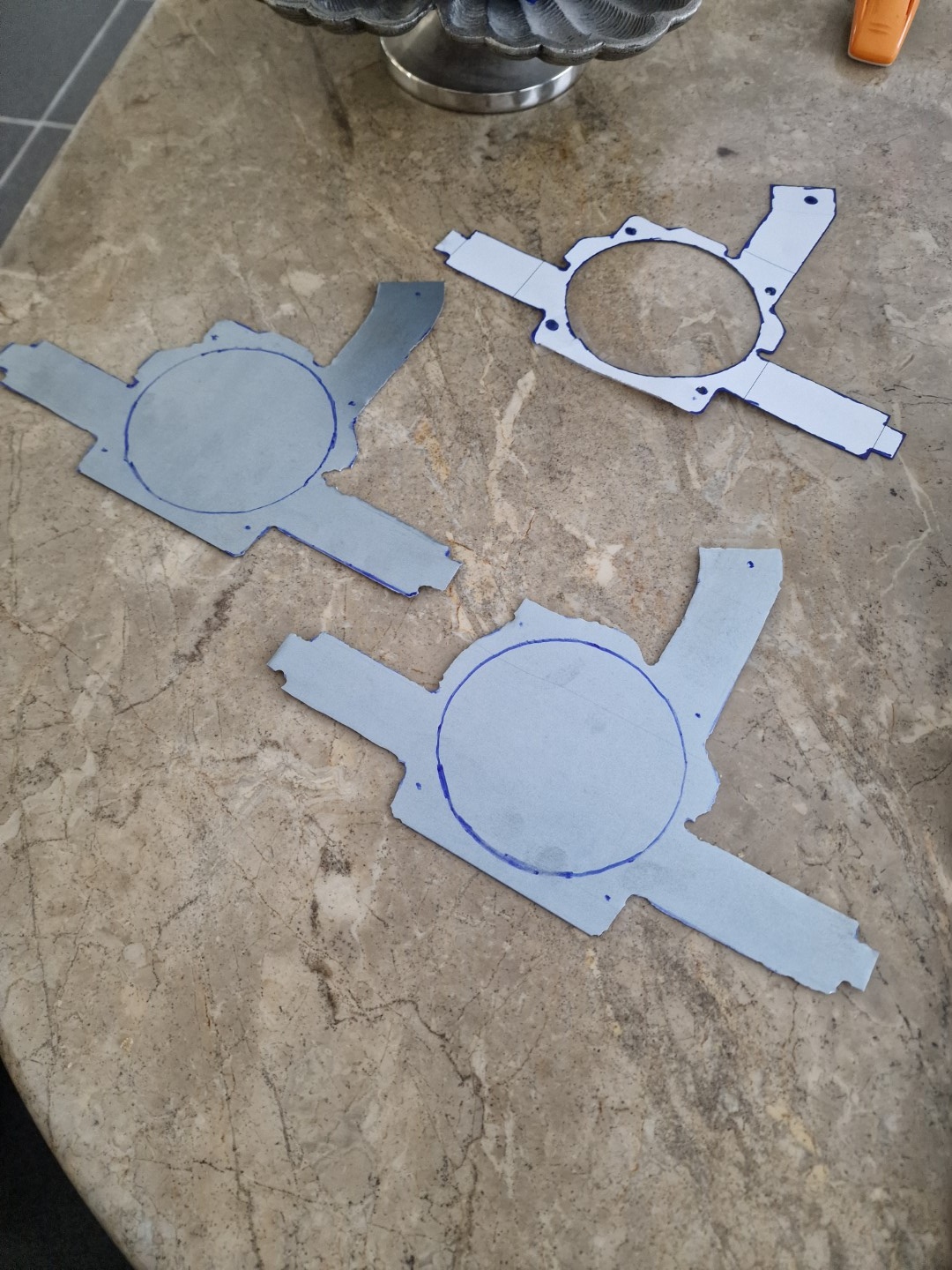 Anschließend wollte ich mir beinahe die Halter für die LS kaufen, habe dann aber hier im Forum die Skizze gefunden für eine Schablone des Halters. Da ich noch eine Metallplatte aus dem Baumarkt da hatte und mein vor Jahren geschenkter "Nibbler" noch nie zum Einsatz kam, habe ich mich entschieden die Halter selber zu machen.