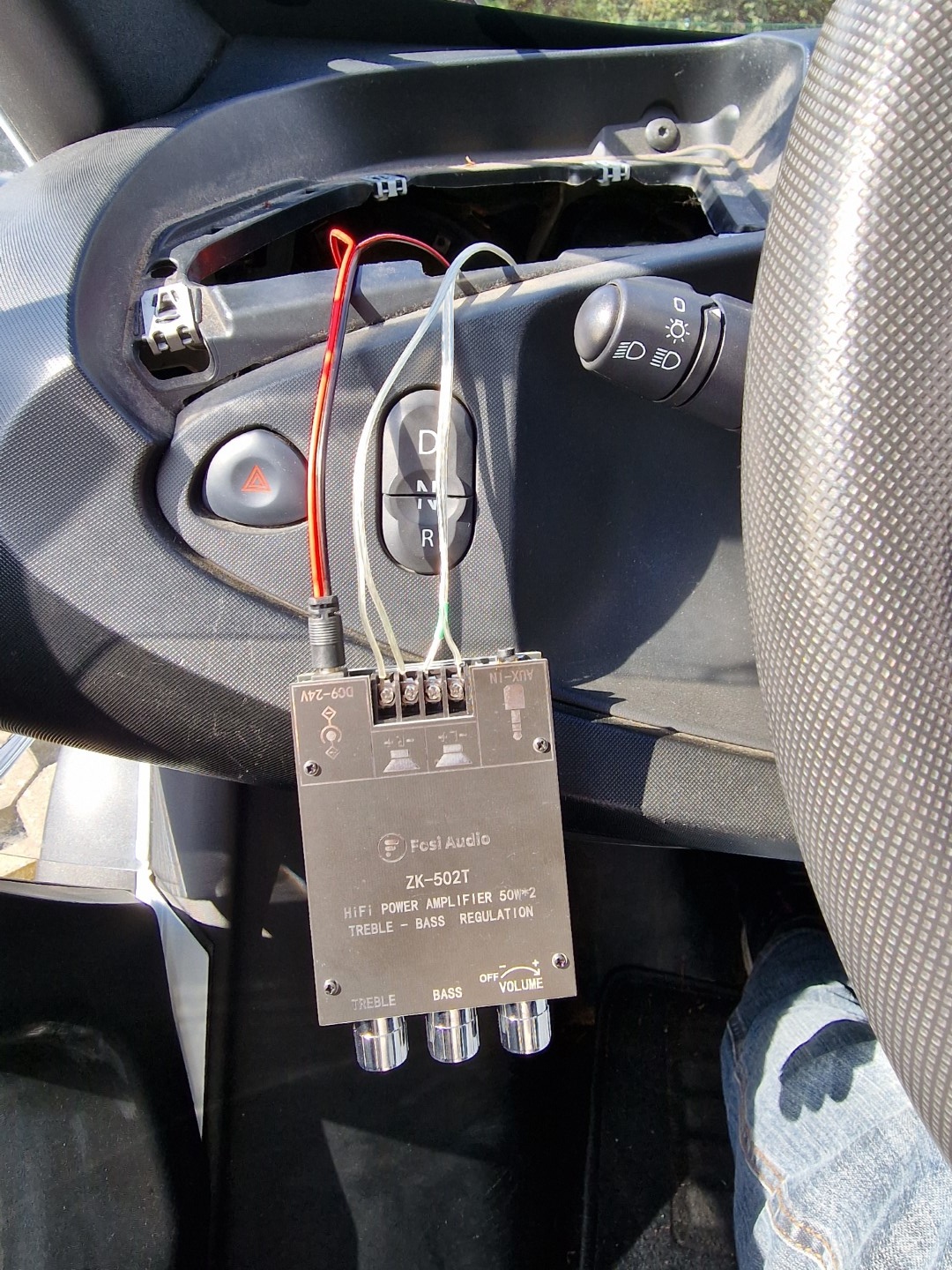 Dann erfolgt Isolierung der Kabel, durchführen durch das vorhandene Loch im Handschuhfach und mit doppelseitigem Klebeband den Verstärker befestigen.