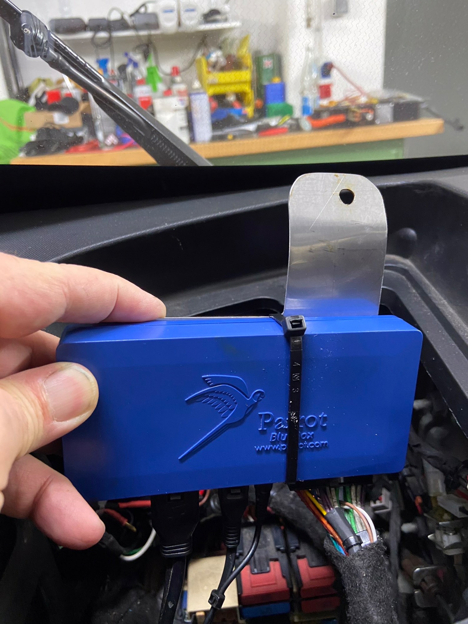 Berthold schrieb: Das Parrot wurde von Renault ab Werk im Twizy verbaut. Dabei wurden die zu langen Kabel aufgewickelt und mit Filzklebeband umwickelt. Die blaue Parrot Box mit der Elekronik wurde außen auf das linke Handschuhfach geklebt. MMn ein ziemlicher Murks.