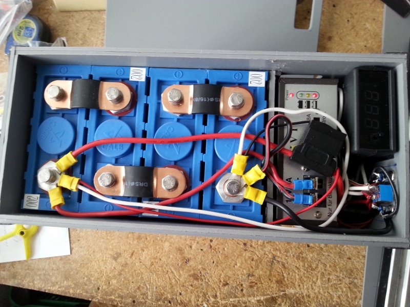 3. Batteriekasten (4x 40Ah Lifepo4 Akkus + Ladegerät + Relais + Timer + Voltmeter usw)