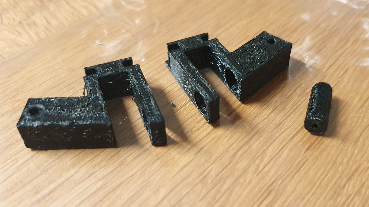 Das Teil, wo die Schraube drin ist, ist das Teil was am Schloss befestigt werden soll und die Enden vom Bowdenzug befestigt. Am Schloss ist von hinten eine Schraube. Da könnte man das idealerweise dranhängen. Das andere Teil hält die Enden vom Bowdenzug. Da gehören Madenschrauben rein, die müssten morgen ankommen. Und dann noch aus Spaß an der Freude noch Clips, die den Bowdenzug zusammenhalten (Ja ja, Kabelbinder würde es auch tun ;) )