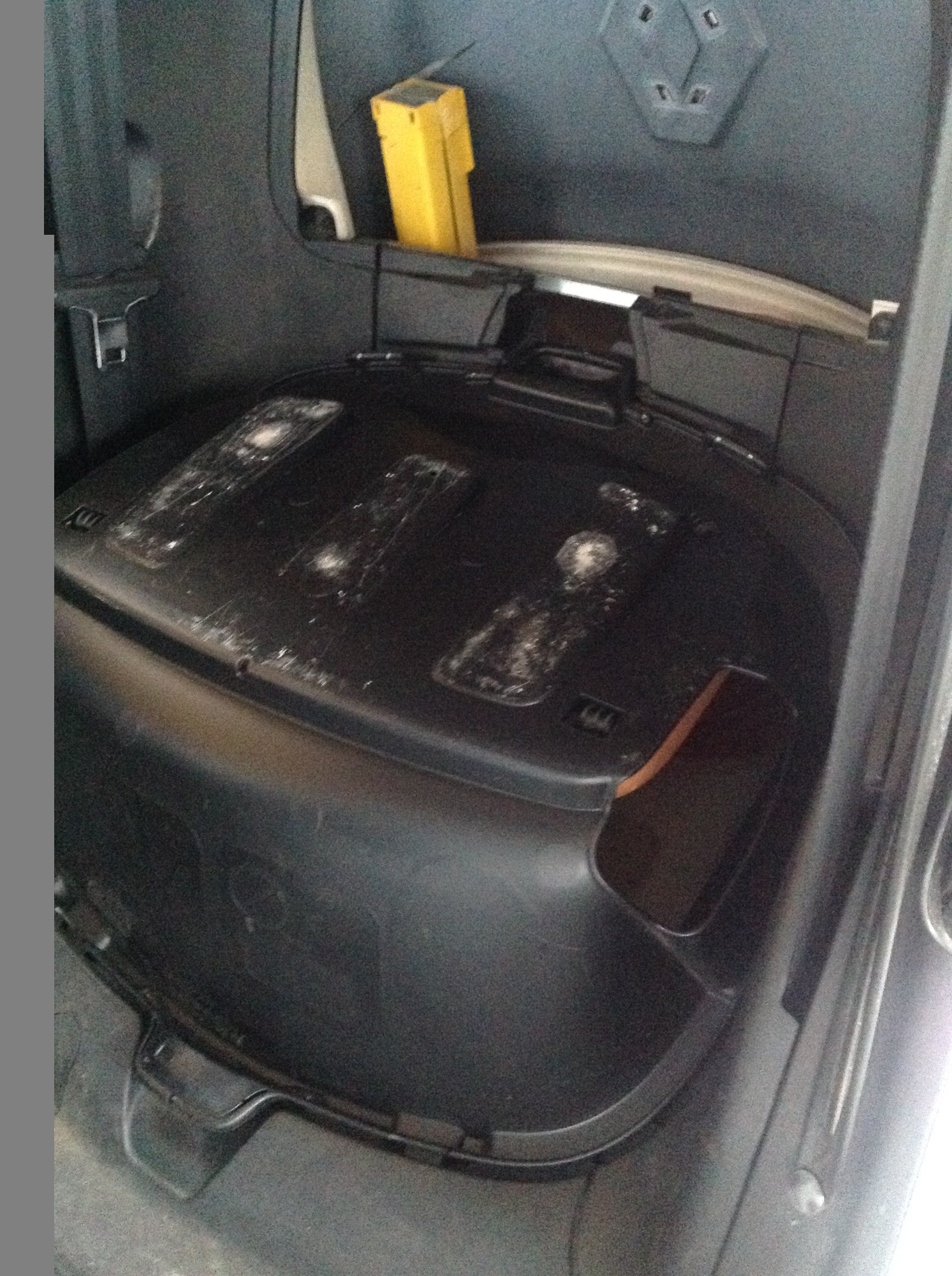 Erst vorne einhaken, dann oben einhaken, dann abschließen. Super stabile Sache. Und an eine Abdeckung für das Gurtschloss-Loch hate Renault auch gedacht.