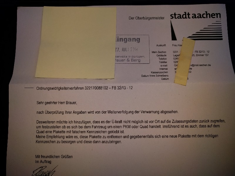 franktastic schrieb: Ich wärme auch das noch Mal auf. Ich hab's Mal darauf ankommen lassen. Hab ne Ordnungswidrigkeitsverfahren bekommen und das Verwarngeld abgelehnt und zur Einstellung des Verfahrens aufgefordert. Et voila :