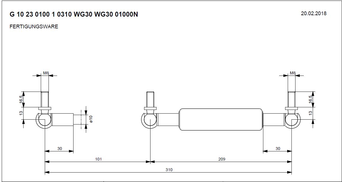 kann mir jemand helfen? Ich habe ein Angebot für 1000er Federn erhalten :laugh: . Wie groß ist der Durchmesser der Kugelgelenke und sind die mit M8 verschraubt :confused: ? Laut Hersteller muss bei einer 1000N Feder ein WG30 Gelenk verwendet werden :pinch: .