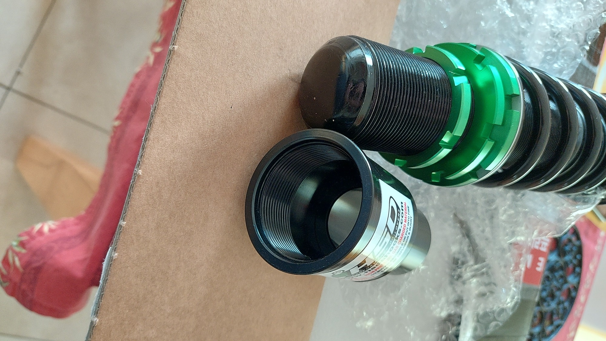 Die untere Dämpferaufnahme ist übrigens auch angeschraubt, d.h. man kann die Federbeinlänge um ca. 3cm verändern. Die Feder muss ich noch mit der originalen vergleichen. Netterweise ist die Zugstufe der Dämpfer einstellbar.