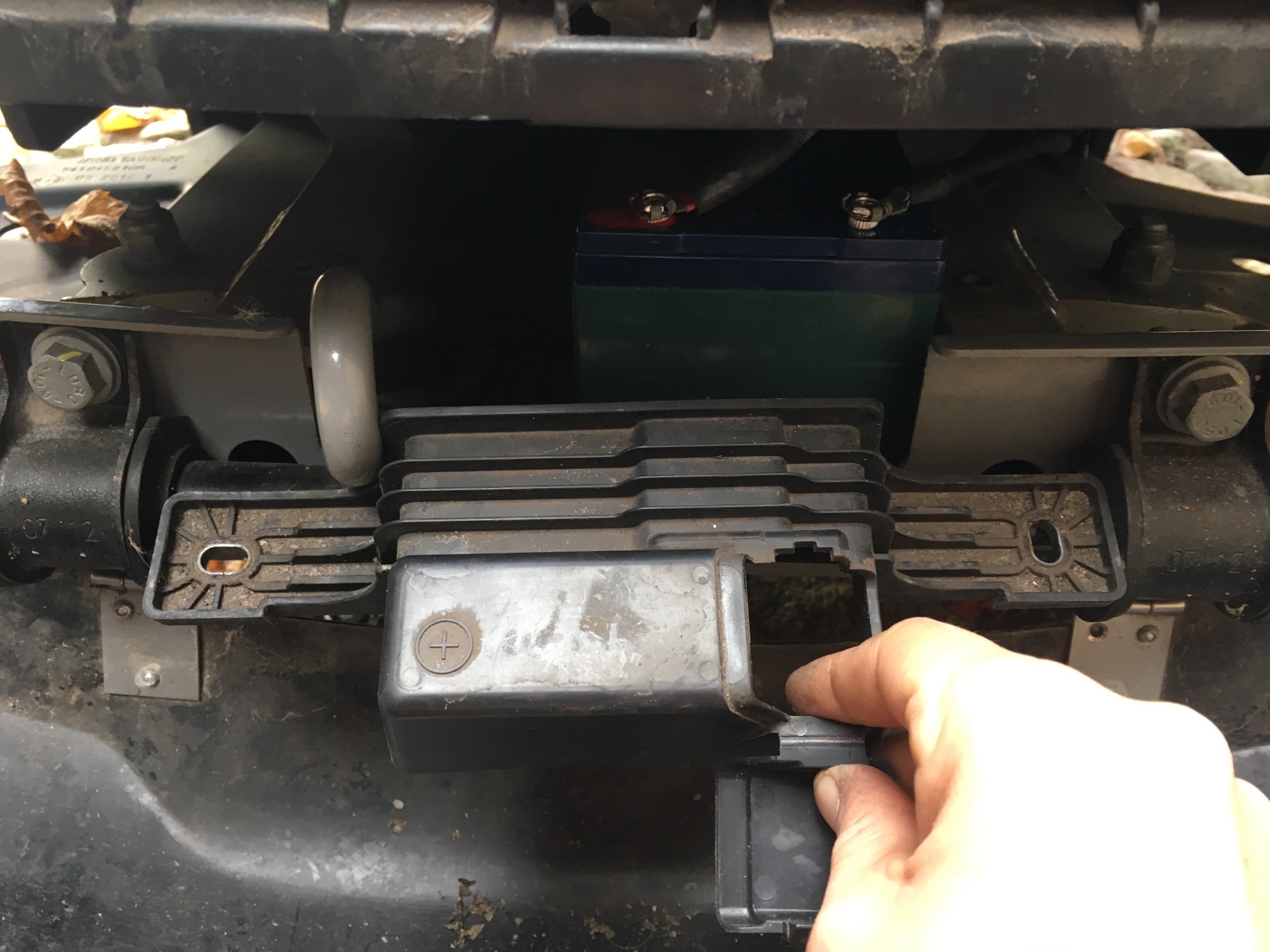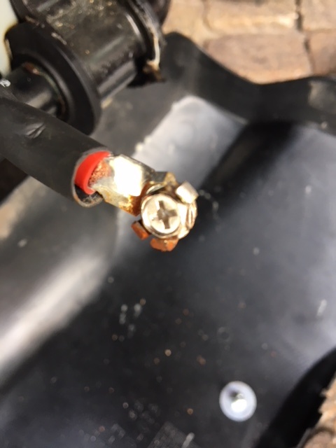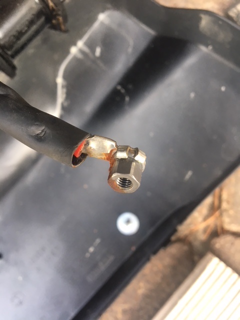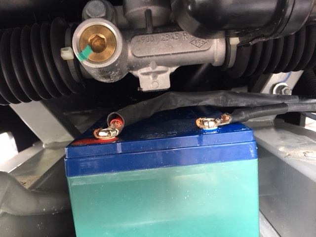 Alte Batterie ausgebaut, Haltemutter aus Kabelschuh entfernt, neue Schrauben eingepasst, Batterie rein, angeschlossen fertisch