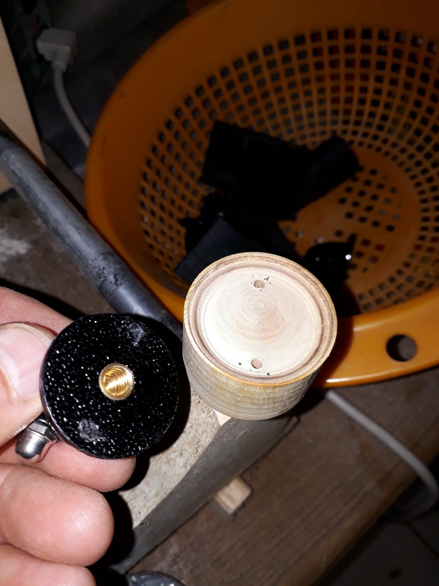 eine Holzschablone gedreht um die Bohrungen wenigstens