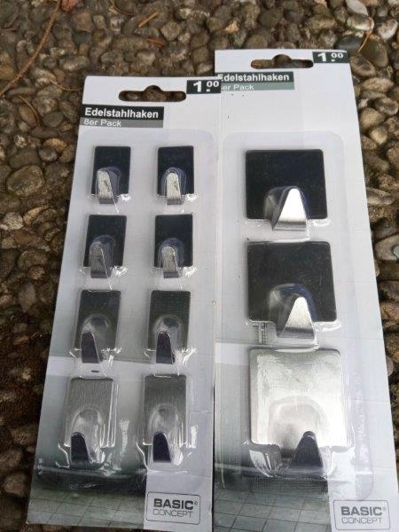 Zwei Euro investiert und Klebehaken aus Alu gekauft. Ich benutzte vier von den kleinen