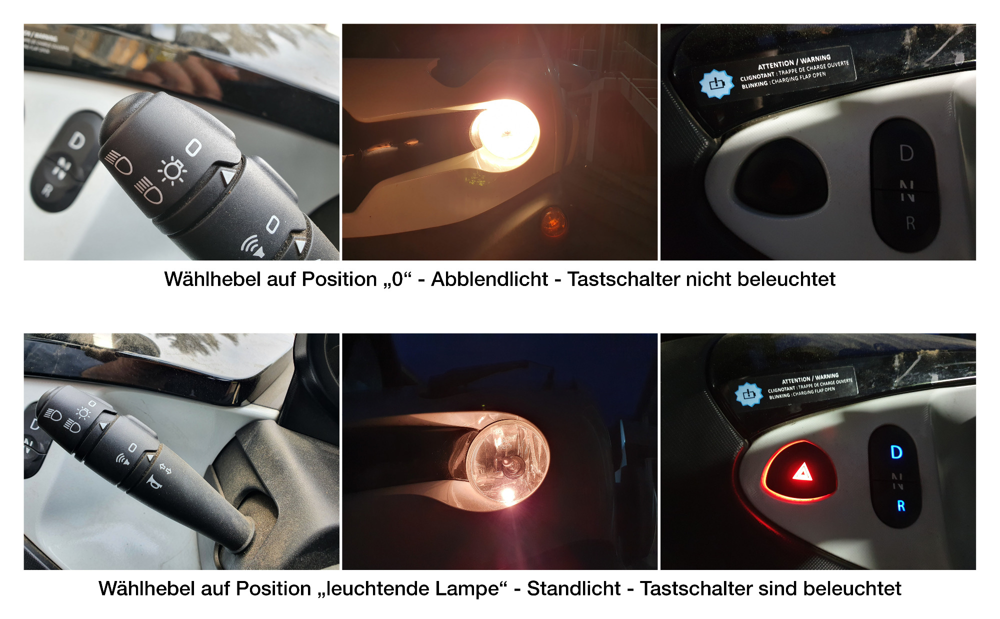 Ich fahre fast immer (ich weiß nicht, wie ihr das handhabt) in der Wählstellung "0" - ich schalte also nie das "offizielle" Abblendlicht ein. Bei "0" geht mit dem Starten geht das Abblendlicht geht an und wenn ich den T. abstelle und ausschalte geht das Licht aus. So weit so gut so praktisch. Dabei sind die Tastschalter für Warnblinker und die Gänge allerdings nicht beleuchtet. Wenn ich nun beim Fahren tagsüber den Wählhebel auf die Position "Standlicht" schalte, was ich ab und zu mache, dann sind die Tastschalter beleuchtet ... und genau diese Funktion hatte ich vorher nicht (ist mir zumindest nie aufgefallen).