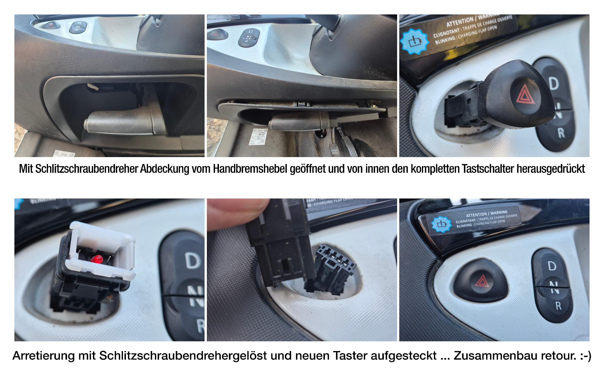 Der von mir eingebaute Taster ist schon wieder seit ca. einem Jahr defekt - nun steht der TÜV an und ich tat es gezwungenermaßen wieder.