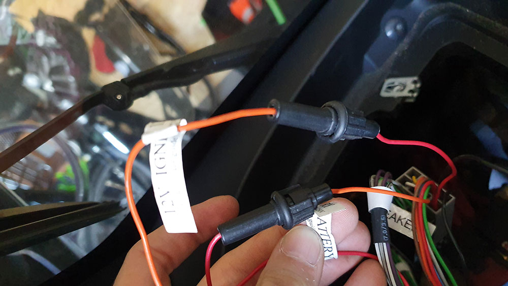 Bei bestimmten Fahrzeugen ist es nötig, die roten und orangen Stromversorgungsdrähte zu