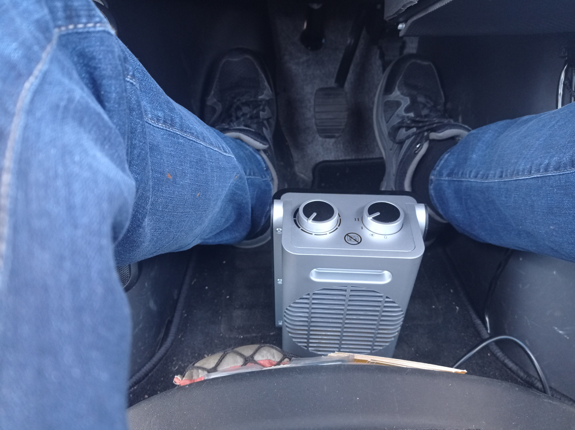 Es musste also irgendwie eine Lösung her wie man gleichzeitig laden kann und den Twizy...zumindest die Füße soweit warm hält, dass man es aushalten kann. Das ganze über die winzige 12 V Bordbatterie zu lösen...nöpp, die wäre zu schnell leer. Dann scheiterte es erstmal am Chinamann. Der bestellte 12 V Miniheizlüfter zum testen kam zerbröselt und in der falschen Version bei mir an (24 statt 12 V)