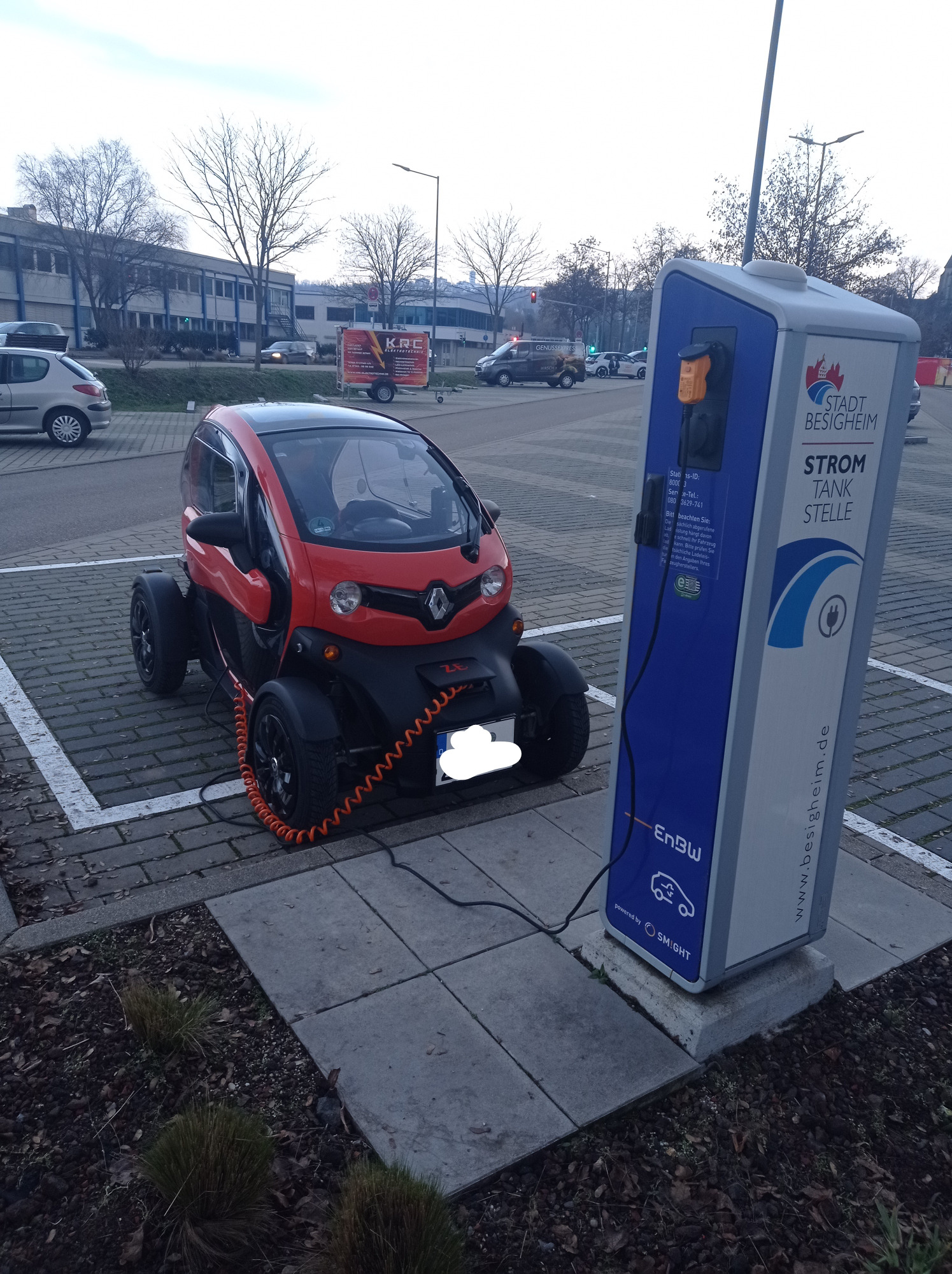 Die Ladesäule hat 3kW angezeigt, Twizy braucht 2kW, Heizlüfter 1kW.