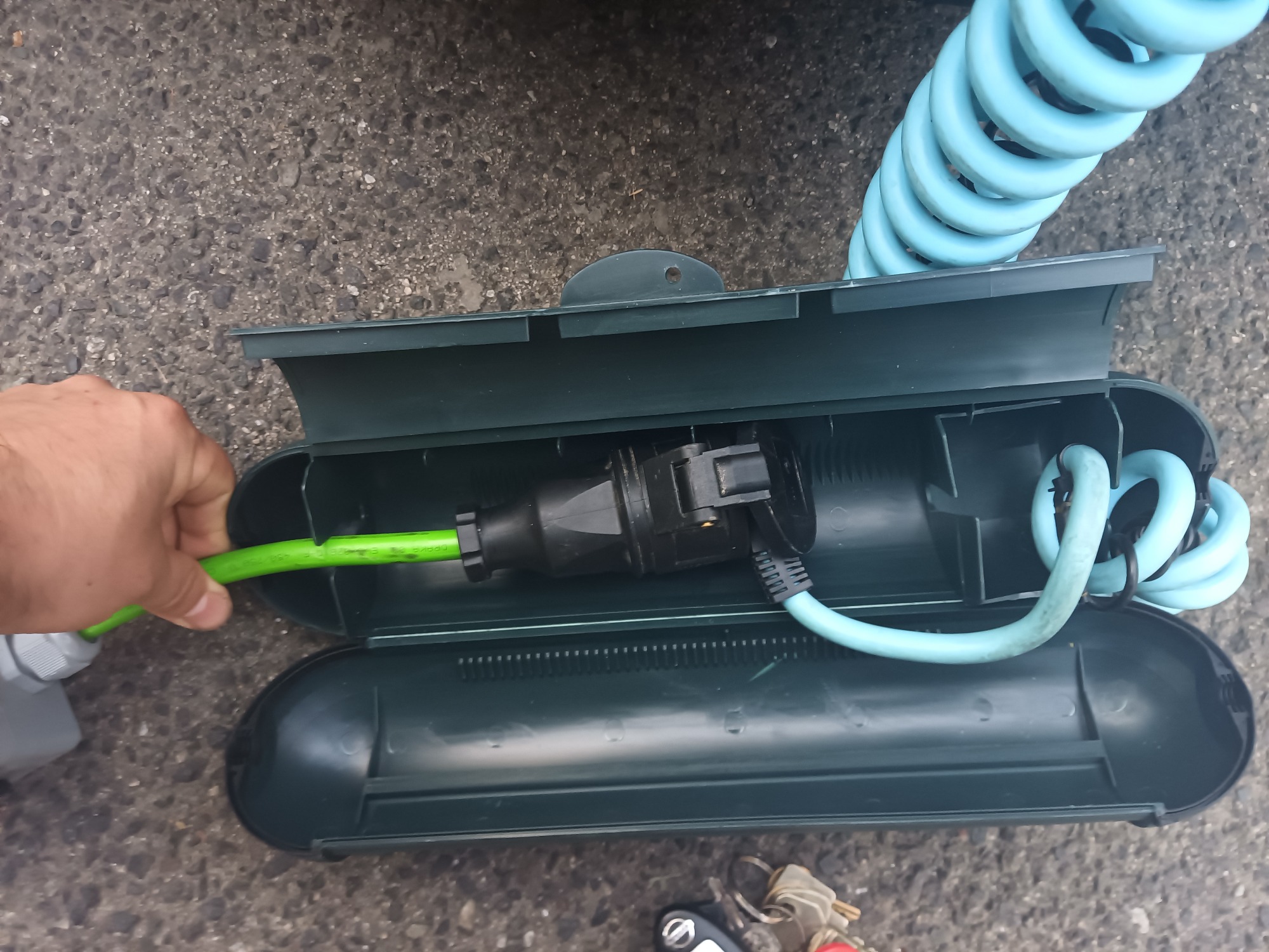 Da die üblichen Schuko-Boxen wegen des Winkelsteckers des Twizy ja nicht passen, habe ich mich erkundigt. Ich bekam den Tipp einfach eine CEE-Box zu nehmen.