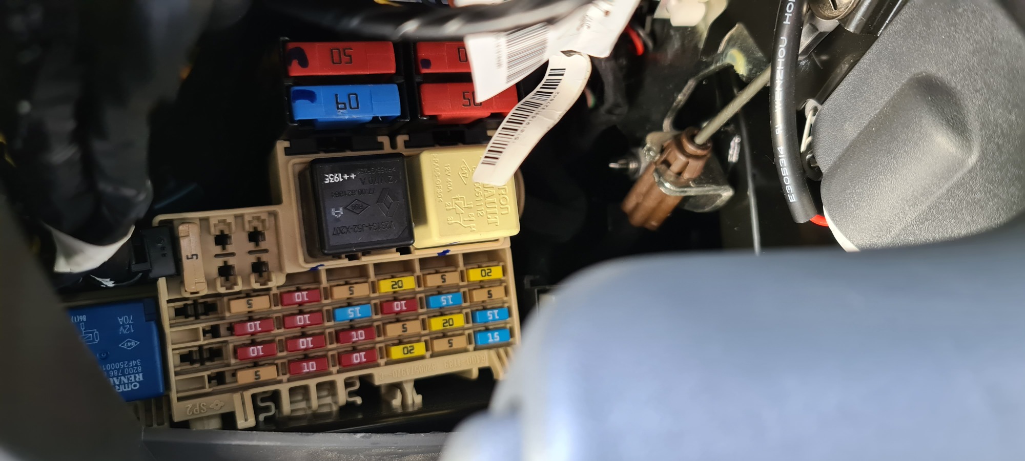 Die 60A über der Handbremse.