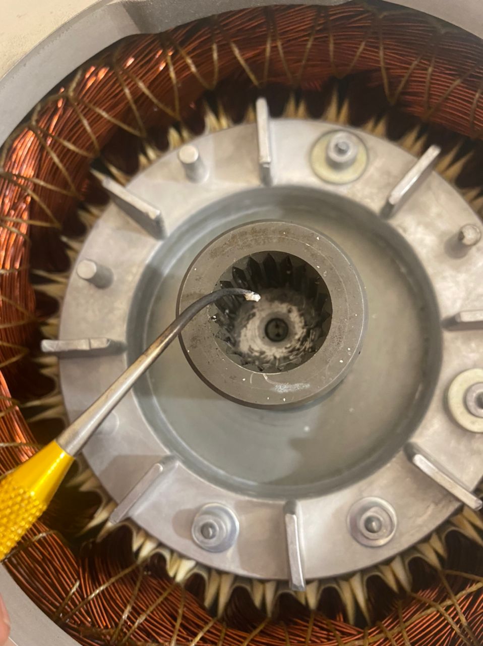 Wissen Sie, was das weiße Material in der Motorhülse ist? Ich habe das weiße Material im Inneren bereits gereinigt, also möchte ich wissen, was es ist, damit ich neues weißes Material hineinlegen kann.