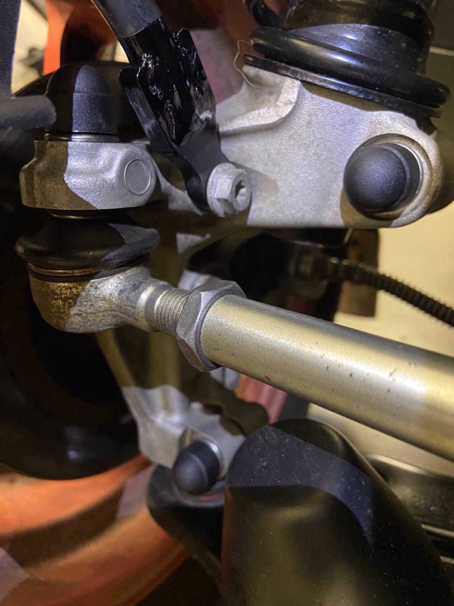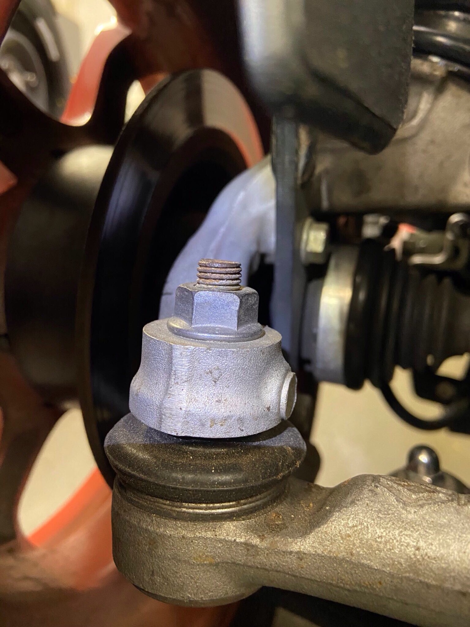 hier z.B am Kugelkopf der Spurstange. die Gewinde rosten gerne.
