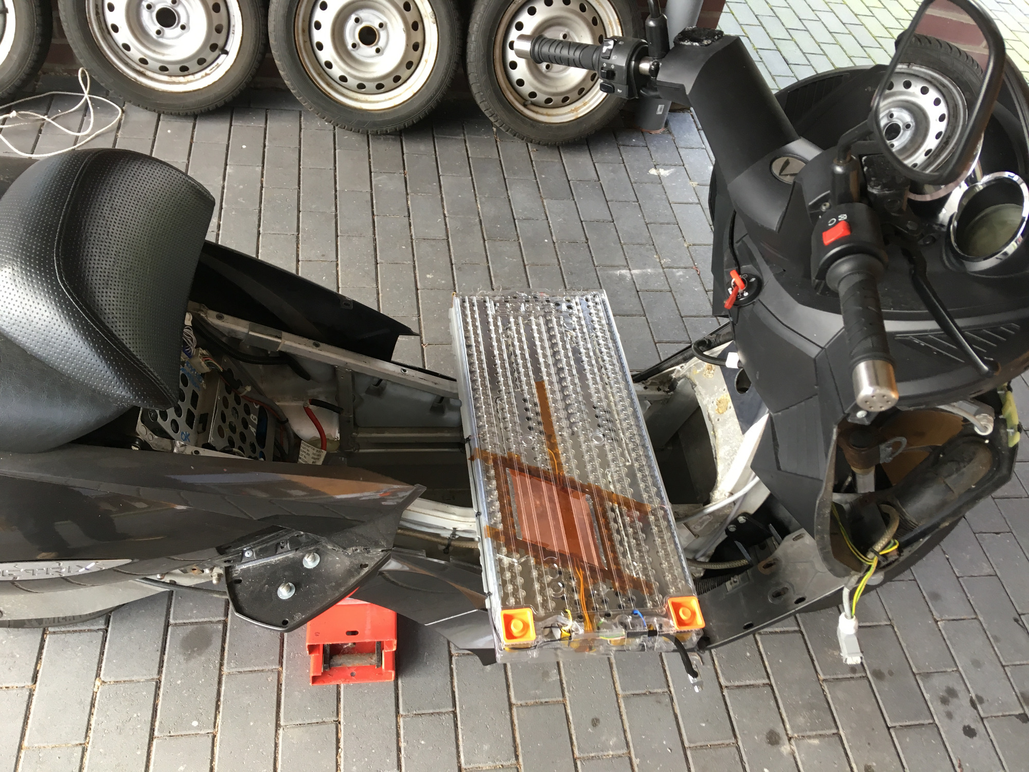 Demnächst geht es weiter hier..... ich werde mich als nächstes um das Einziehen der BMS-Leitungen kümmern, bevor der Akku in den Vectrix eingebaut werden kann.