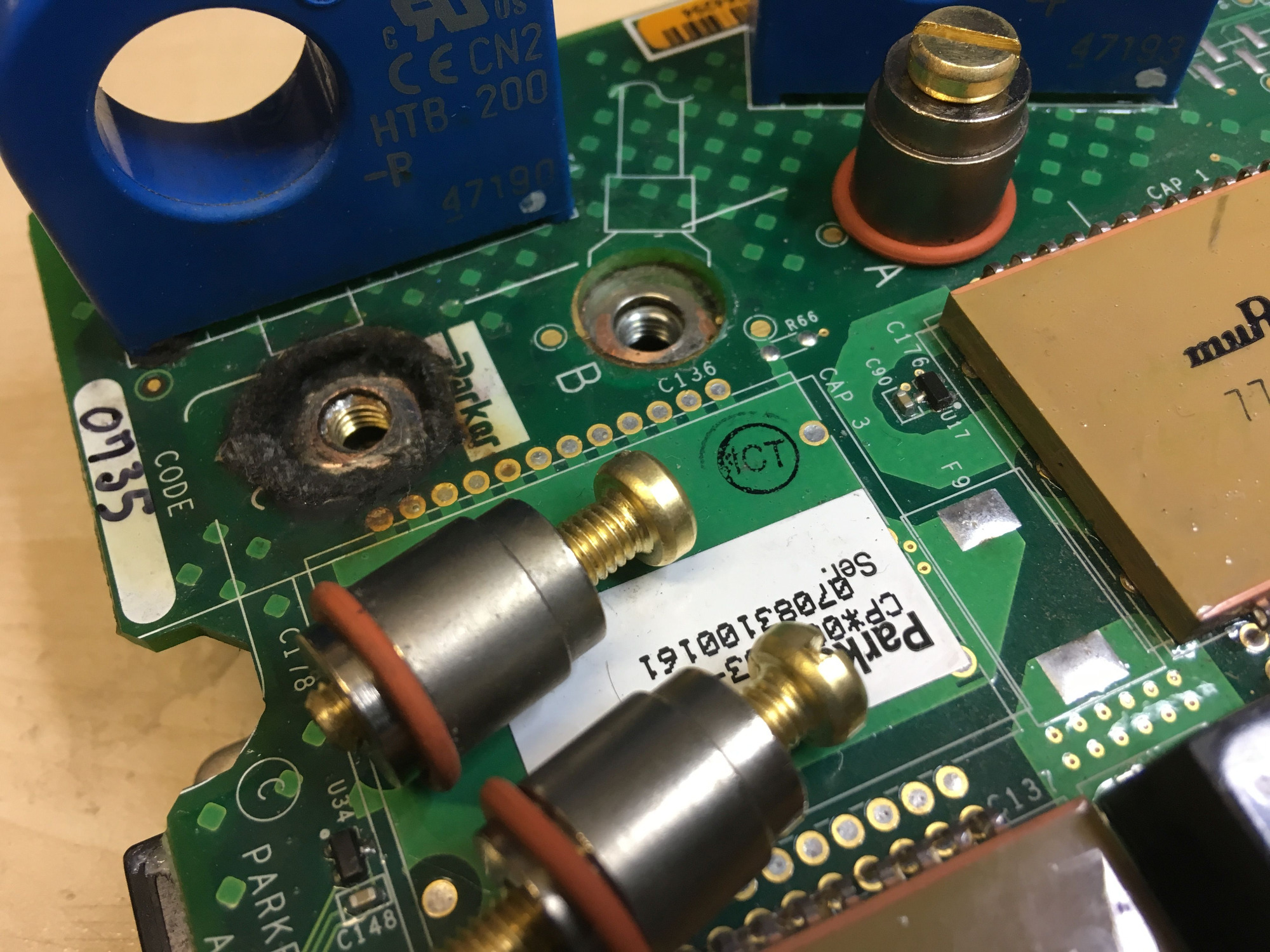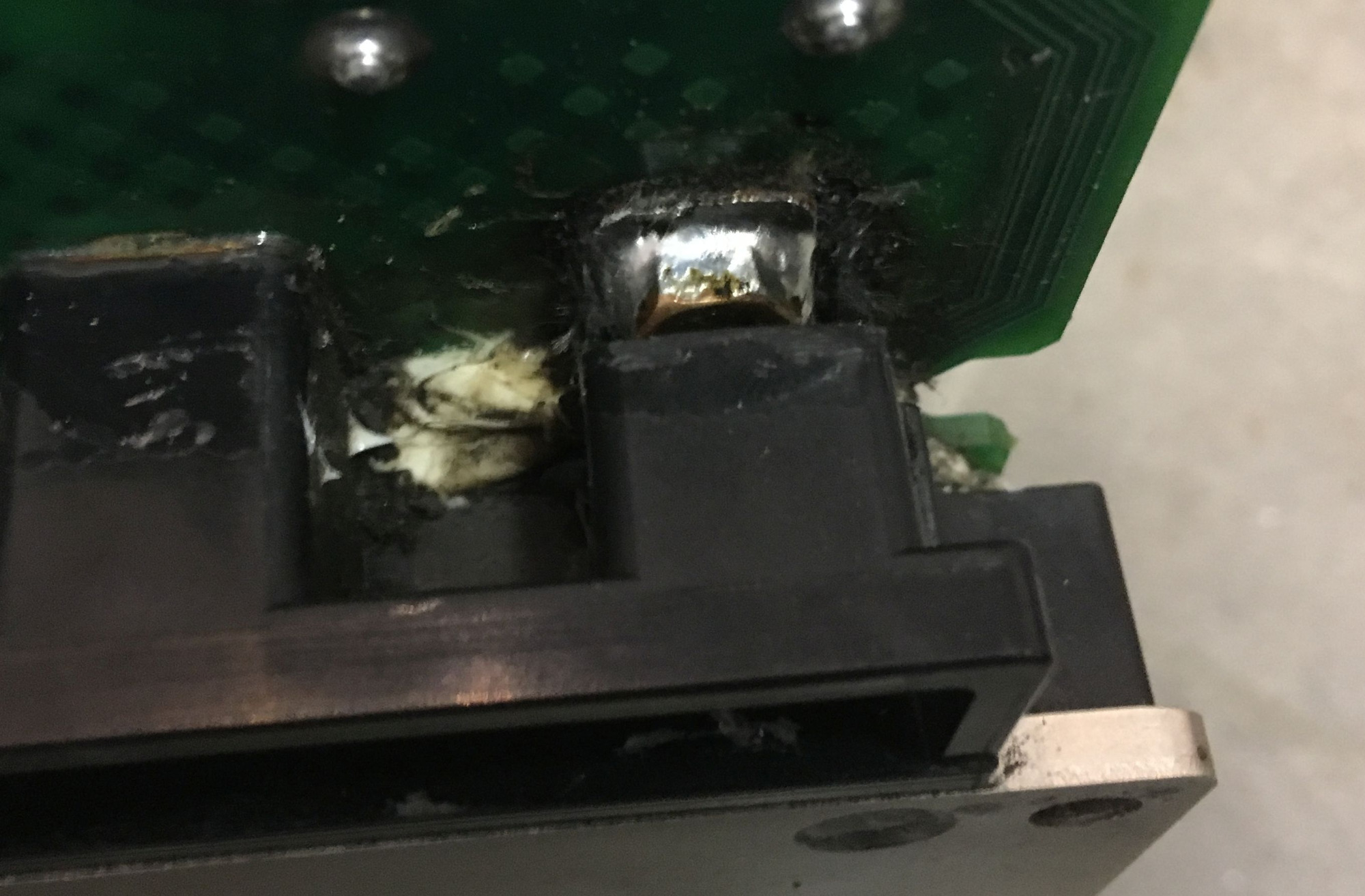 Die im IGBT-Modul verbaute Mutter wurde freigelegt, der Kontakt angefeilt und mit einer Messingmutter versehen.