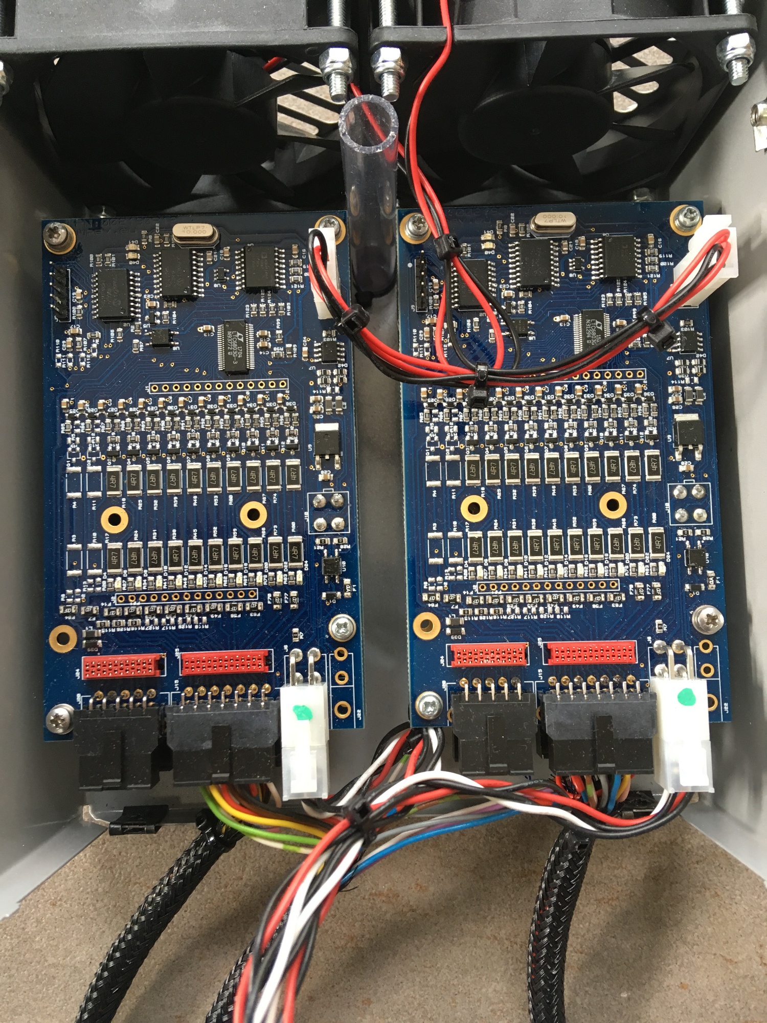 Die Lüfter sind 80er MAGlev Lüfter von Sunon und sind an zwei BMS-Platinen angeschlossen.