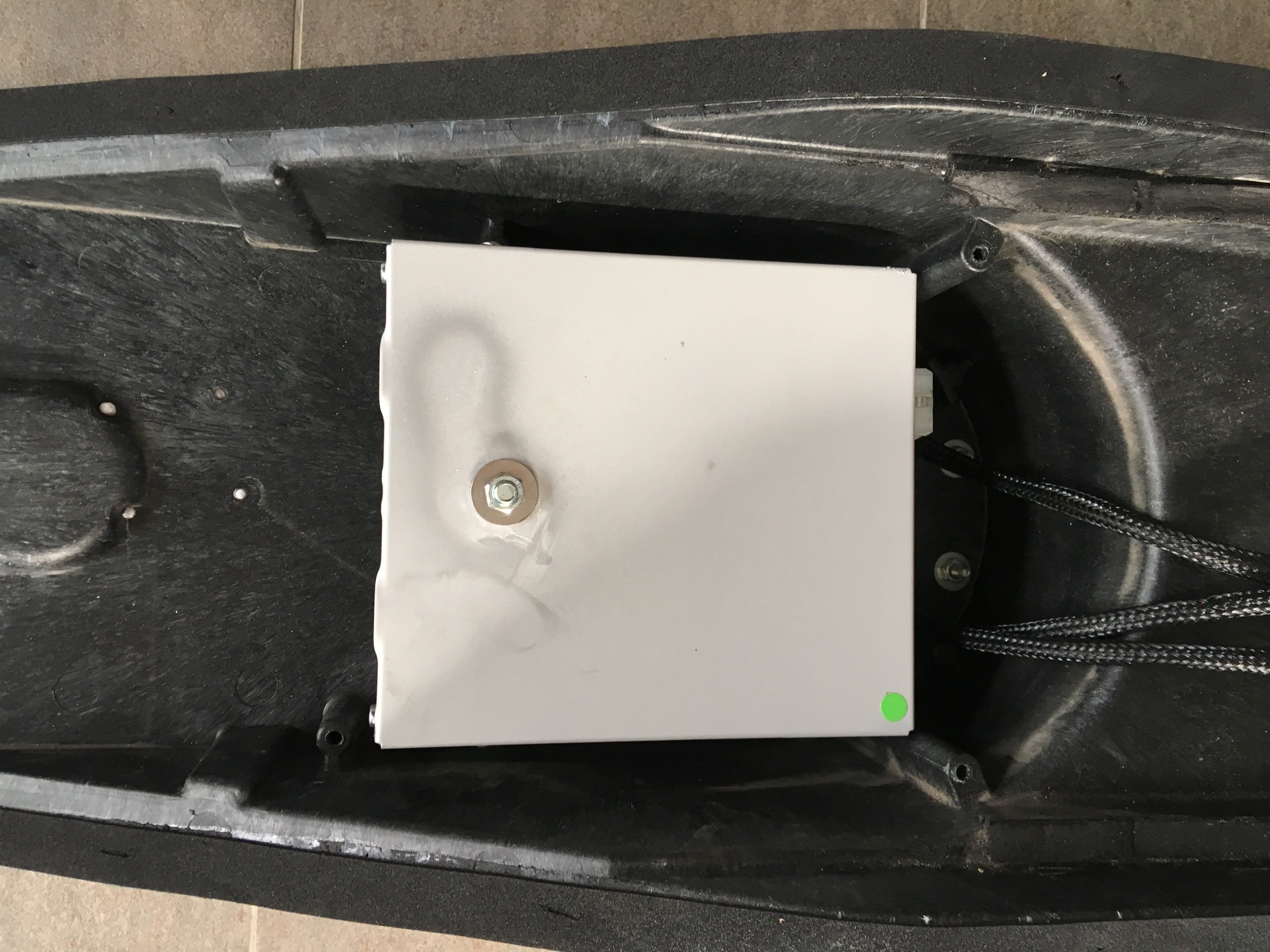 Apropos BMS. Das dazugehörige Gehäuse von Vectrixparts ist netterweise mit einem Röhrchen versehen, so dass man es direkt am Akkukasten verschrauben kann. Vermutlich wird es aber noch weiter nach hinten wandern, da ich noch Platz für das Ausgleichsgefäß des "Kühlmittelkreislaufs" benötige. Möglicherweise finde ich auch außerhalb des Kastens noch ein schönes Plätzchen......
