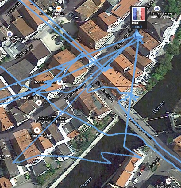 manchmal ist das GPS Signal schwach weil MUC im Bach herumfährt