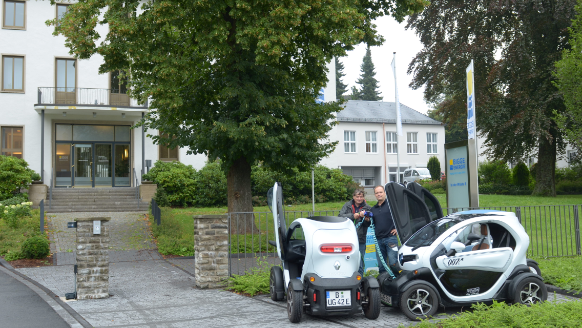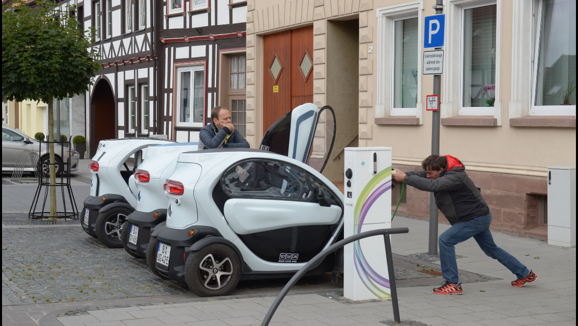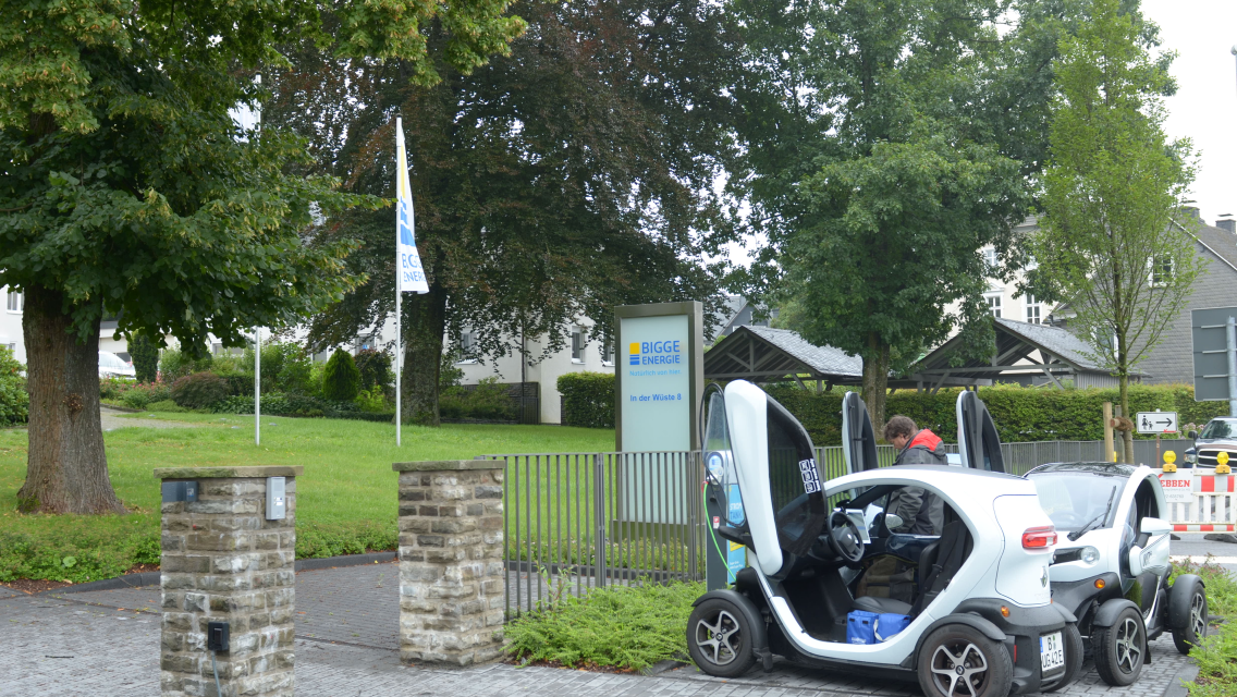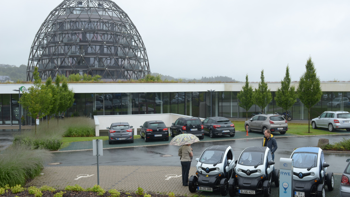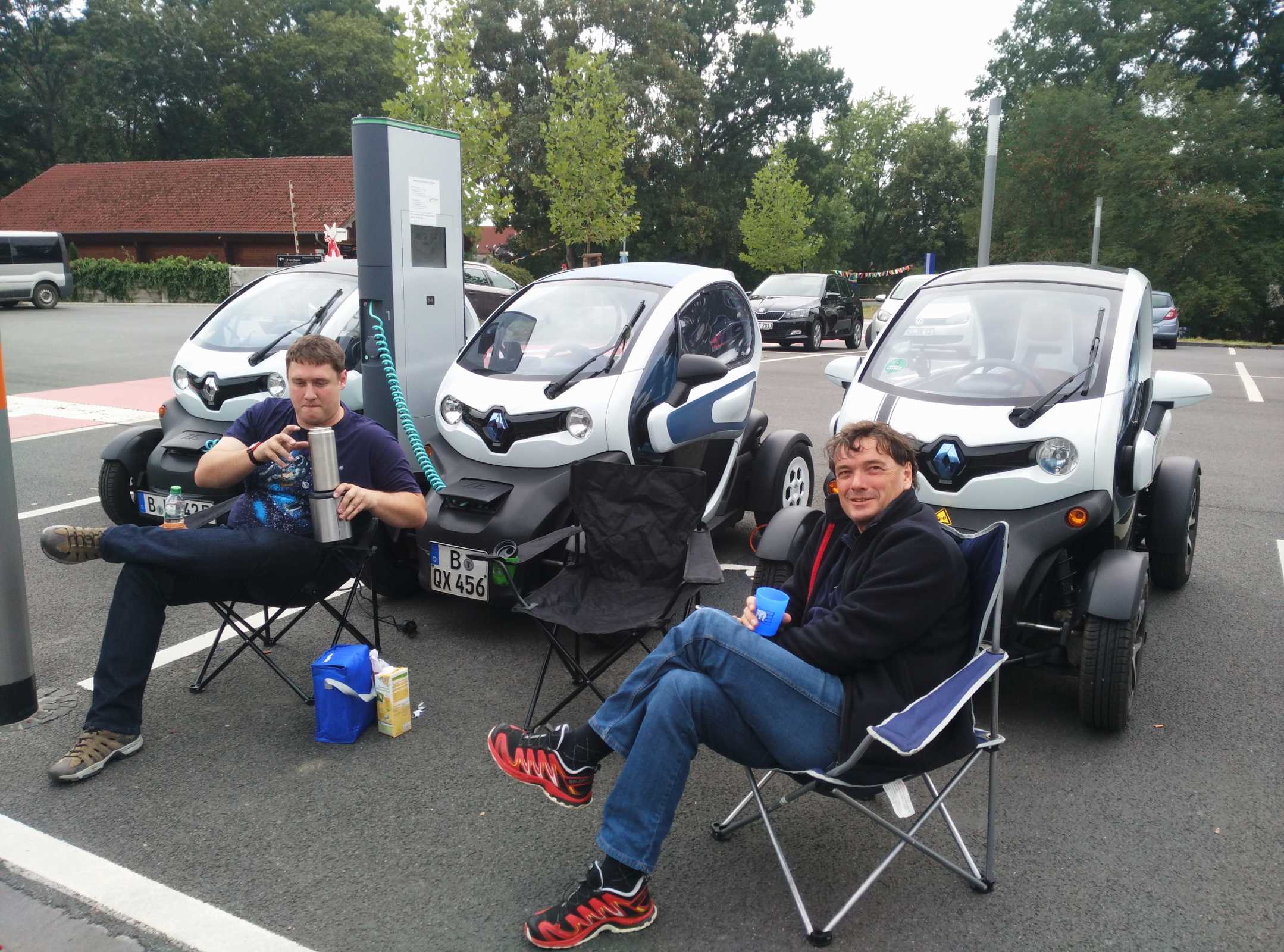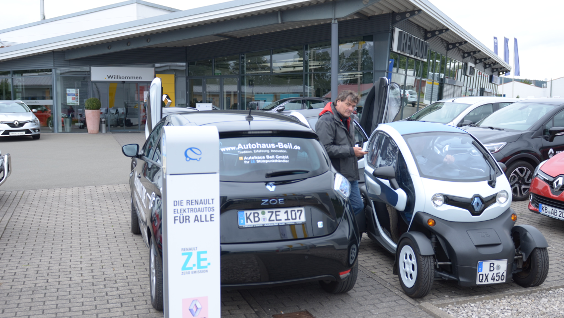 überlegen wir, derweil einen Abstecher zur "RWE" Säule des Z.E Zentrums Renault Beil zu machen.