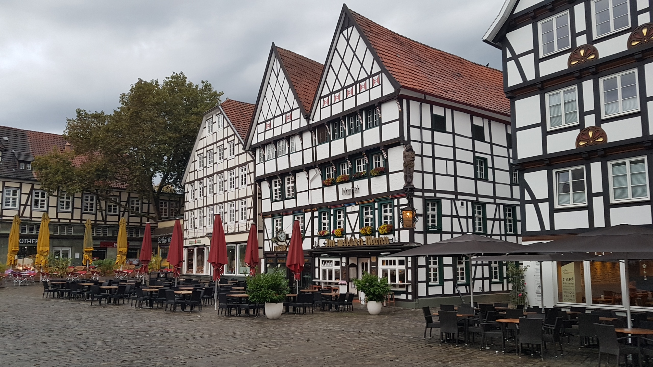 In Ruhe zum Frühstücken gegangen und Soest angeschaut, die Ladeangaben von GE sind für Tourennewbies echt hilfreich, mit der vorgeschlagenen Reichweite von 65 km ist auch genug Reserve drin.