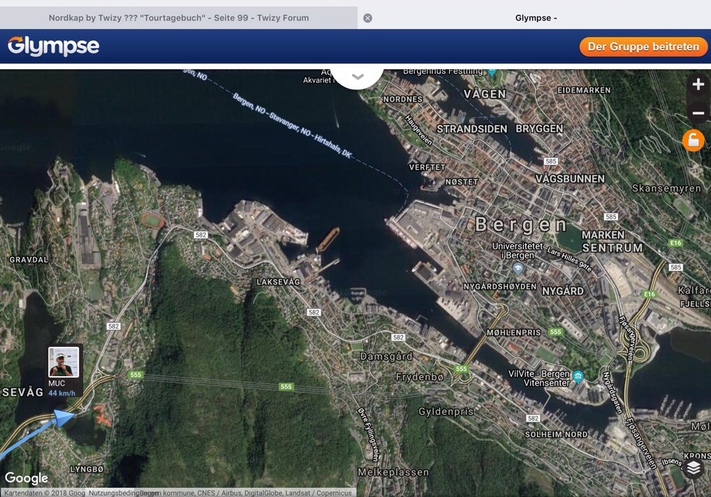 Nee, noch nicht ganz. Er will wieder aufs Schiff und von Bergen nach Hirthals zu gelangen. Dann erst auf aun äx (aussprechen!).Akku61 schrieb: