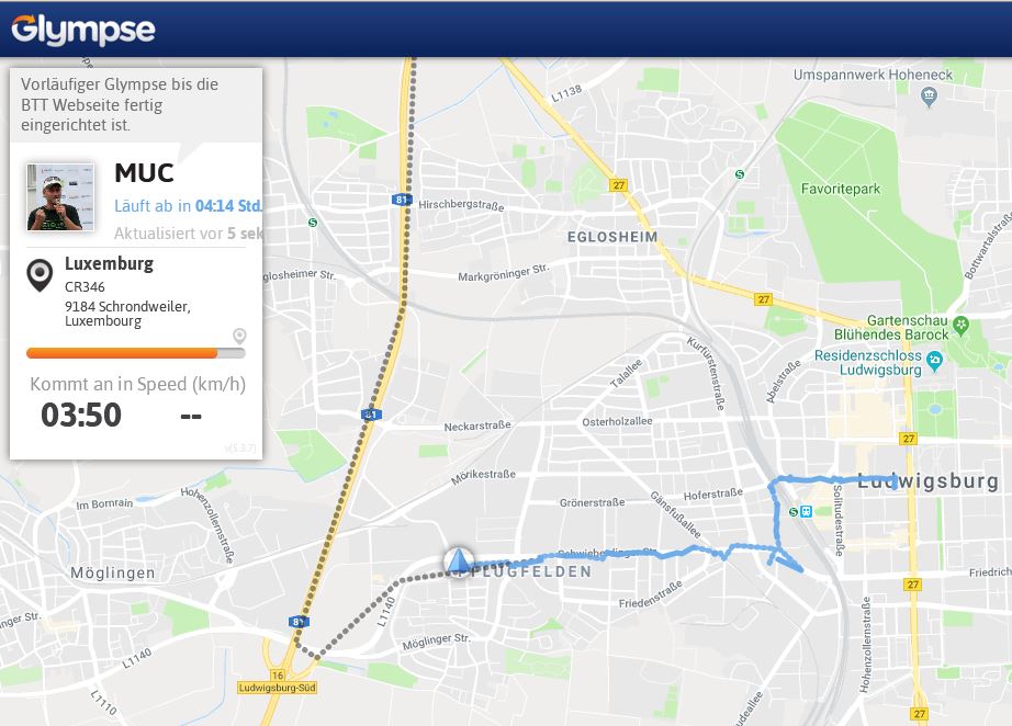 und ihr könnt meine Fahrt, Standort, Geschwindigkeit live sehen