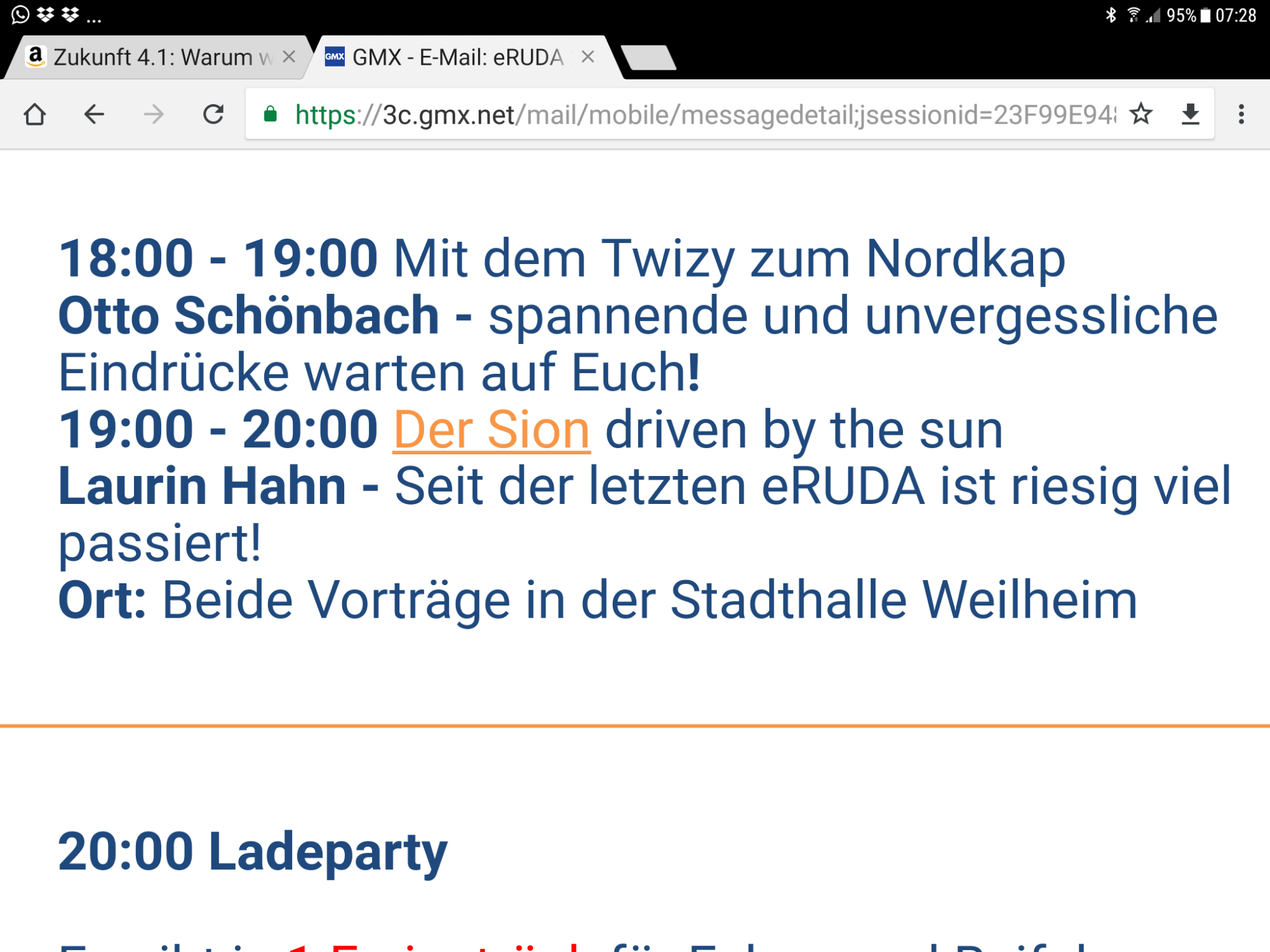 Wie ich bereits in WA geschrieben habe, komme ich zum Vortrag. Bitte einen Platz - wegen meiner Hörschädigung - vorne reservieren, wenn es geht! Danke!ad peter schrieb: