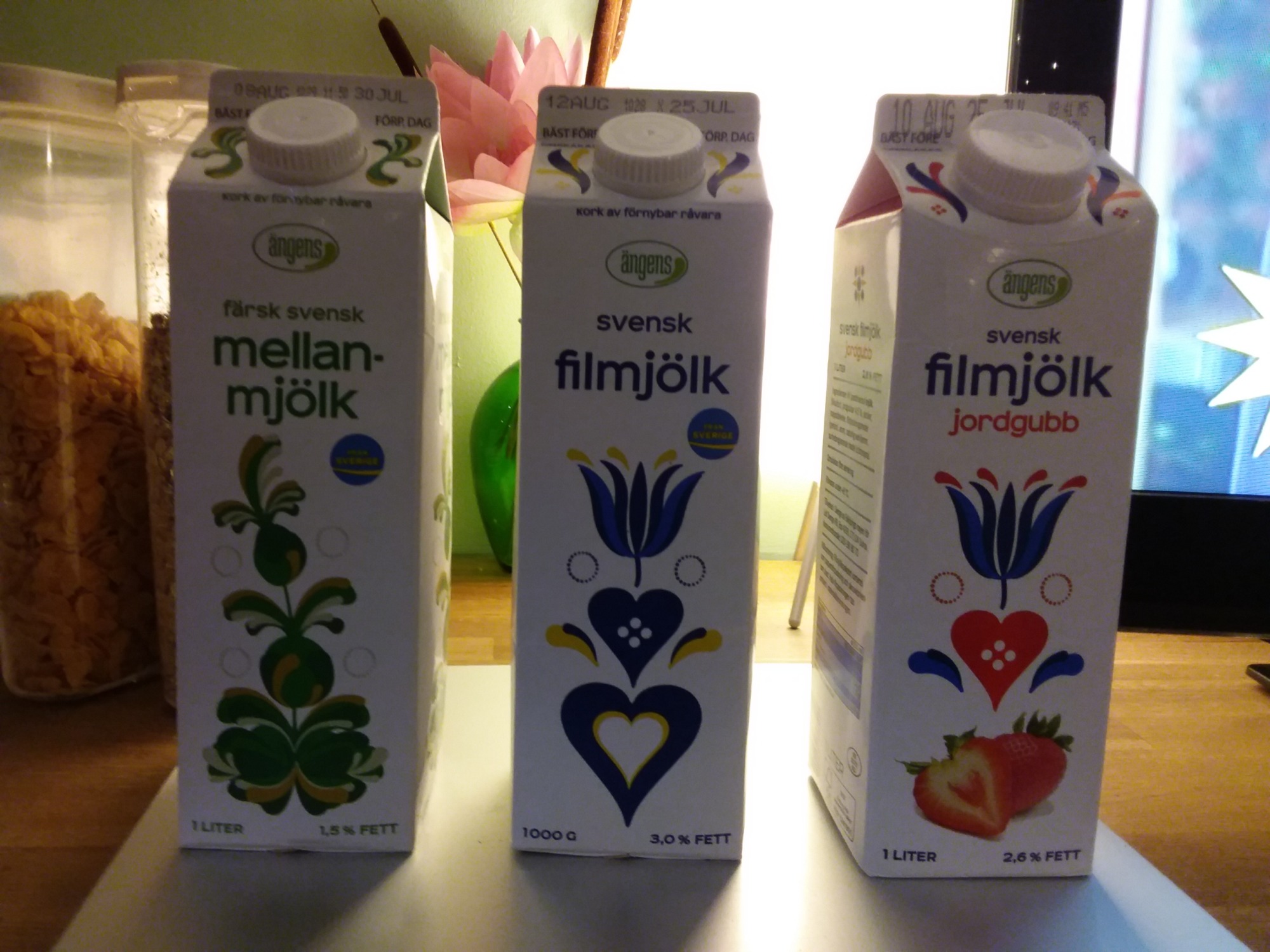 also links normal, mitte Dickmilch (sehr geil wie duenner Joghurt) und rechts mit Erdbeergeschmack..hm