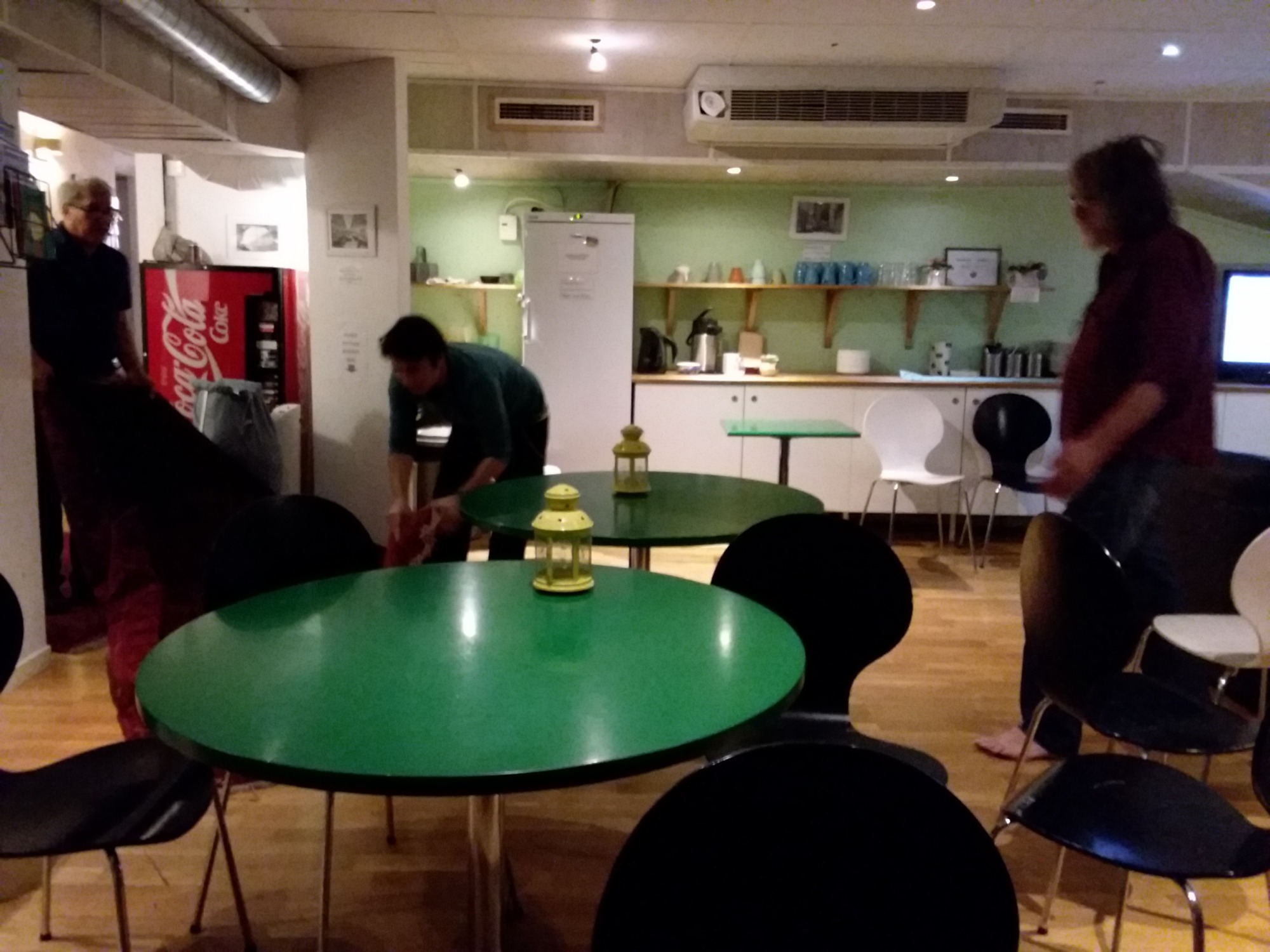 dafuer das ich zu viert in einem sechs quadratmeter Zimmer ohne Fenster genaechtigt habe war ich erstaunlich fit am Morgen....