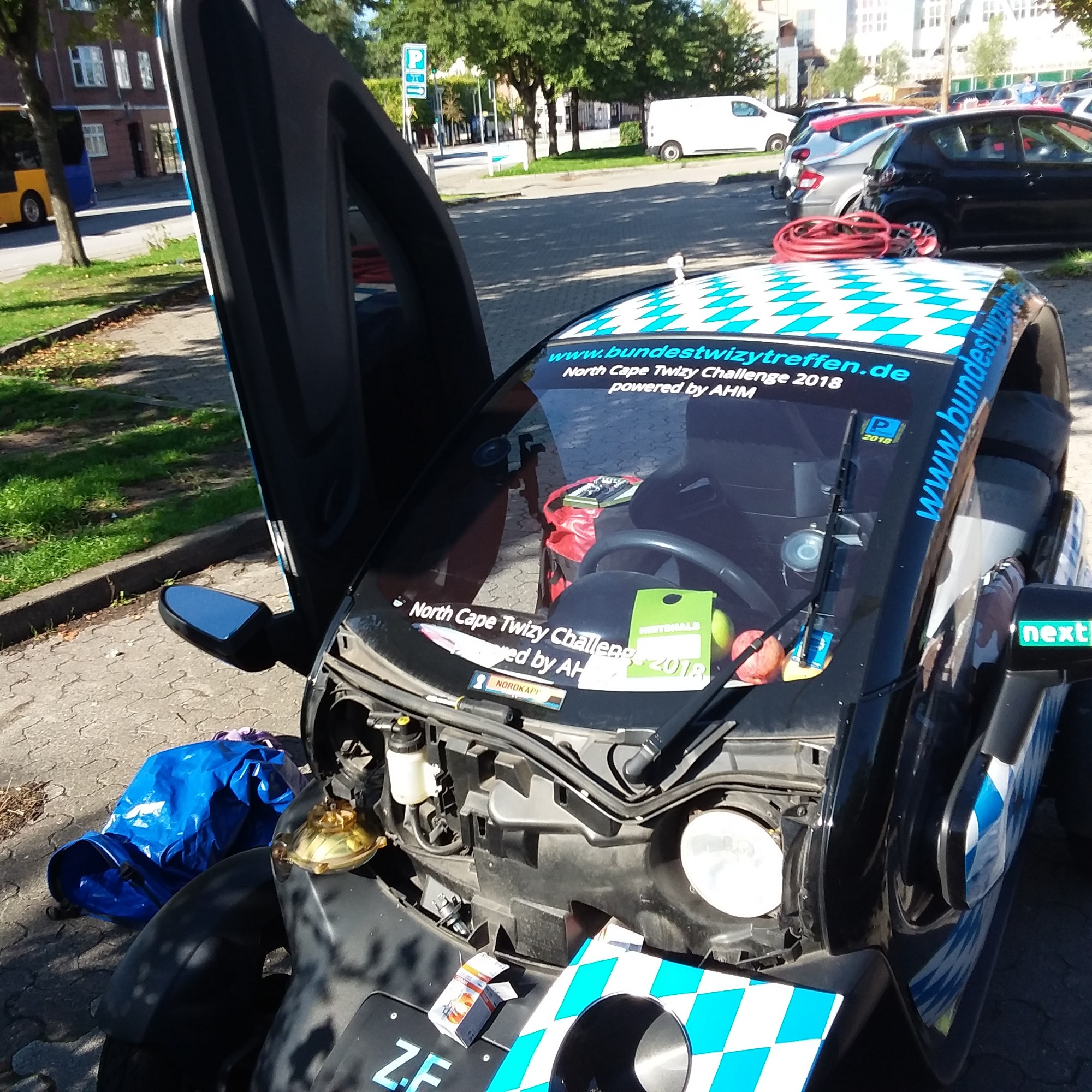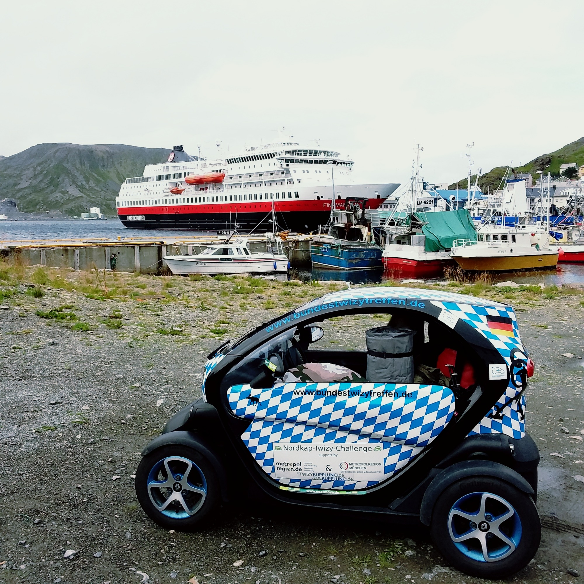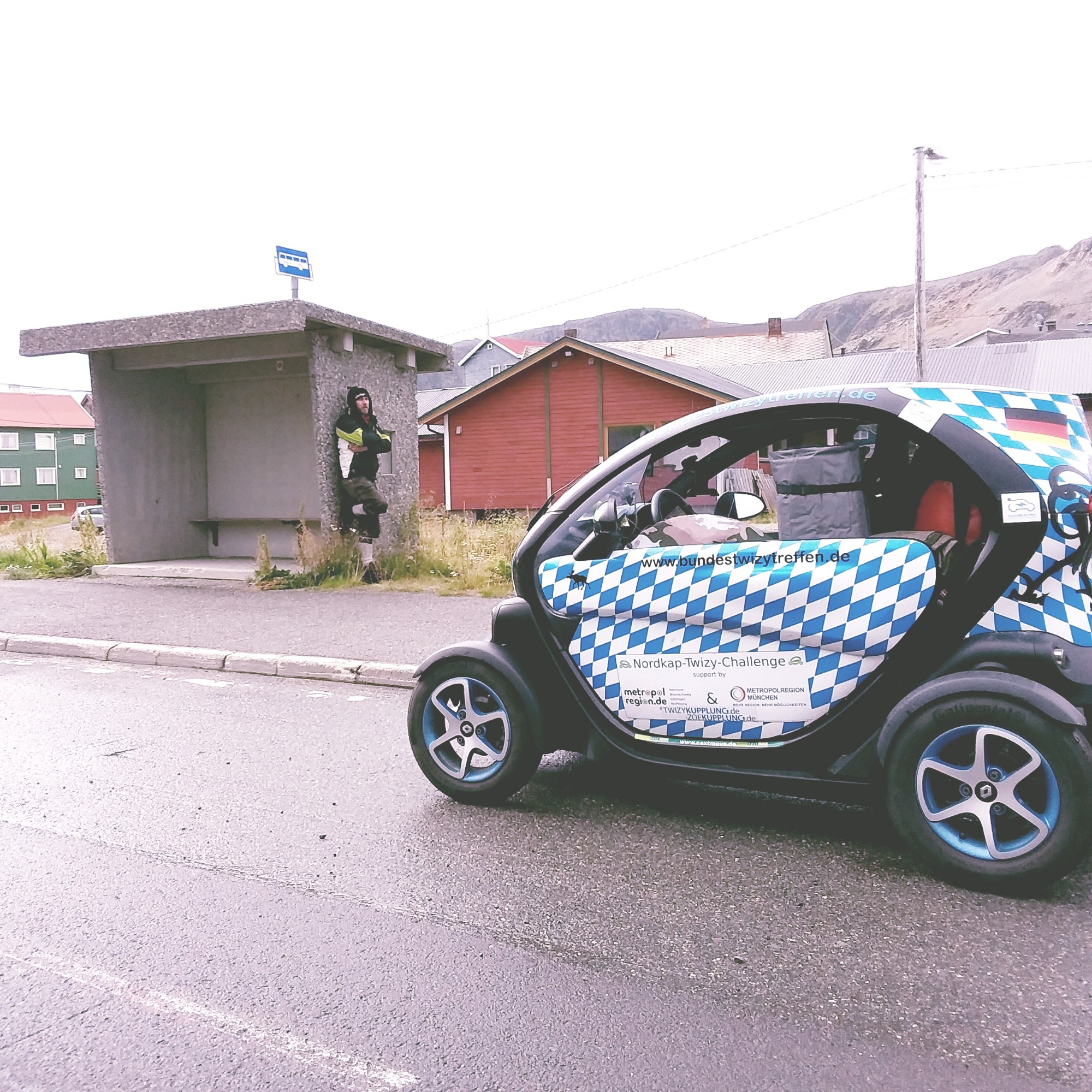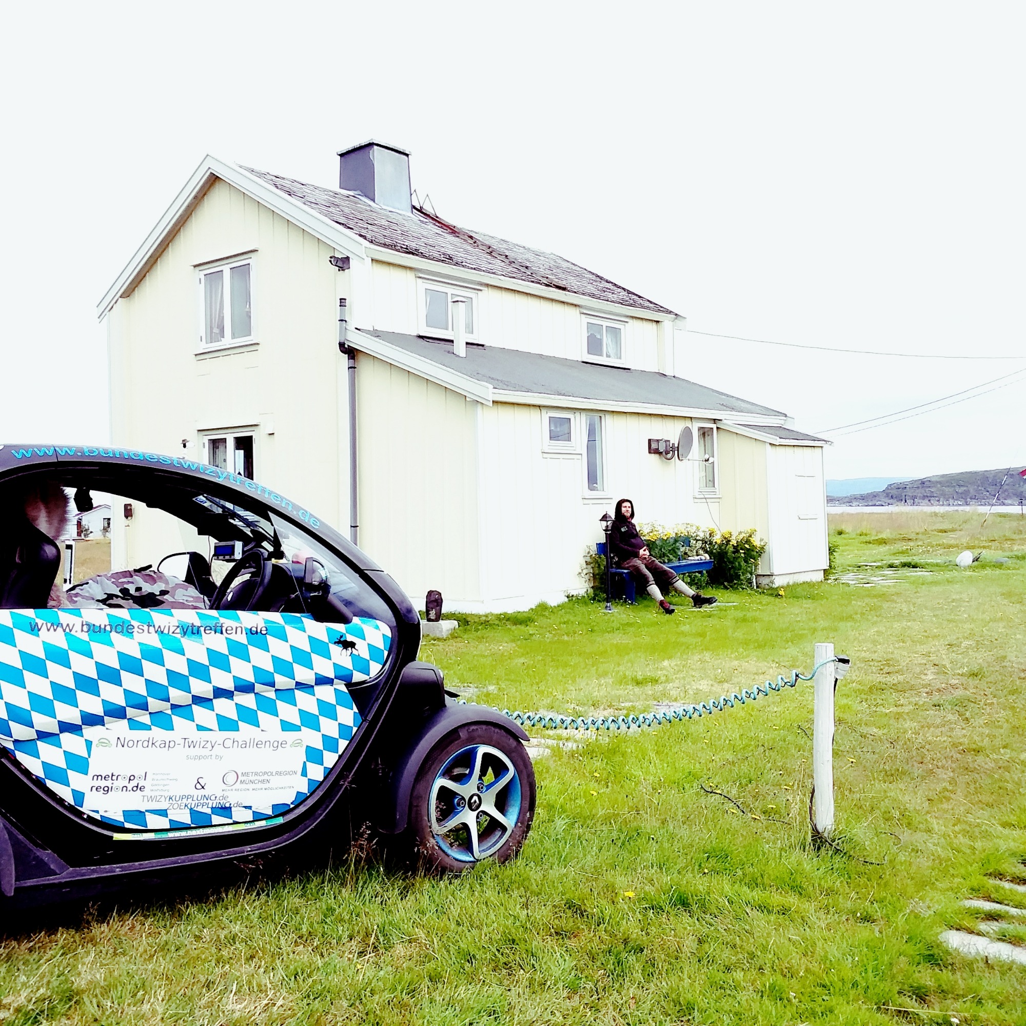 erstmal in Honninsvag kurz in der Werkstatt vorbeigeschaut wo Ralph und Moritz (e-smart Nordkaptour) waren....leider Kai der Chef im Urlaub aber alle nett und Strom gabs auch...