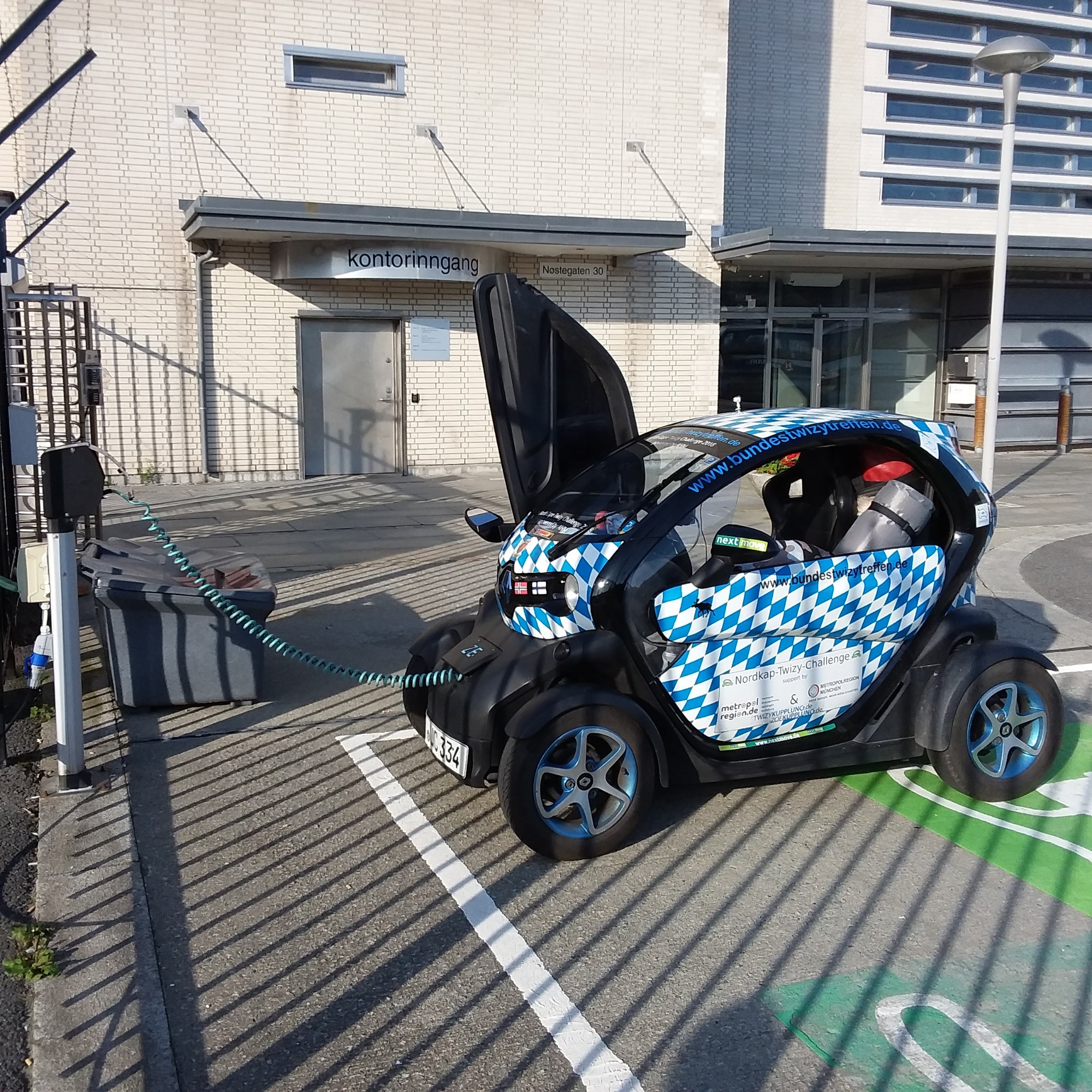 Und dann stehen da schon zwei Twizys (spaeter kam dann noch ein dritter