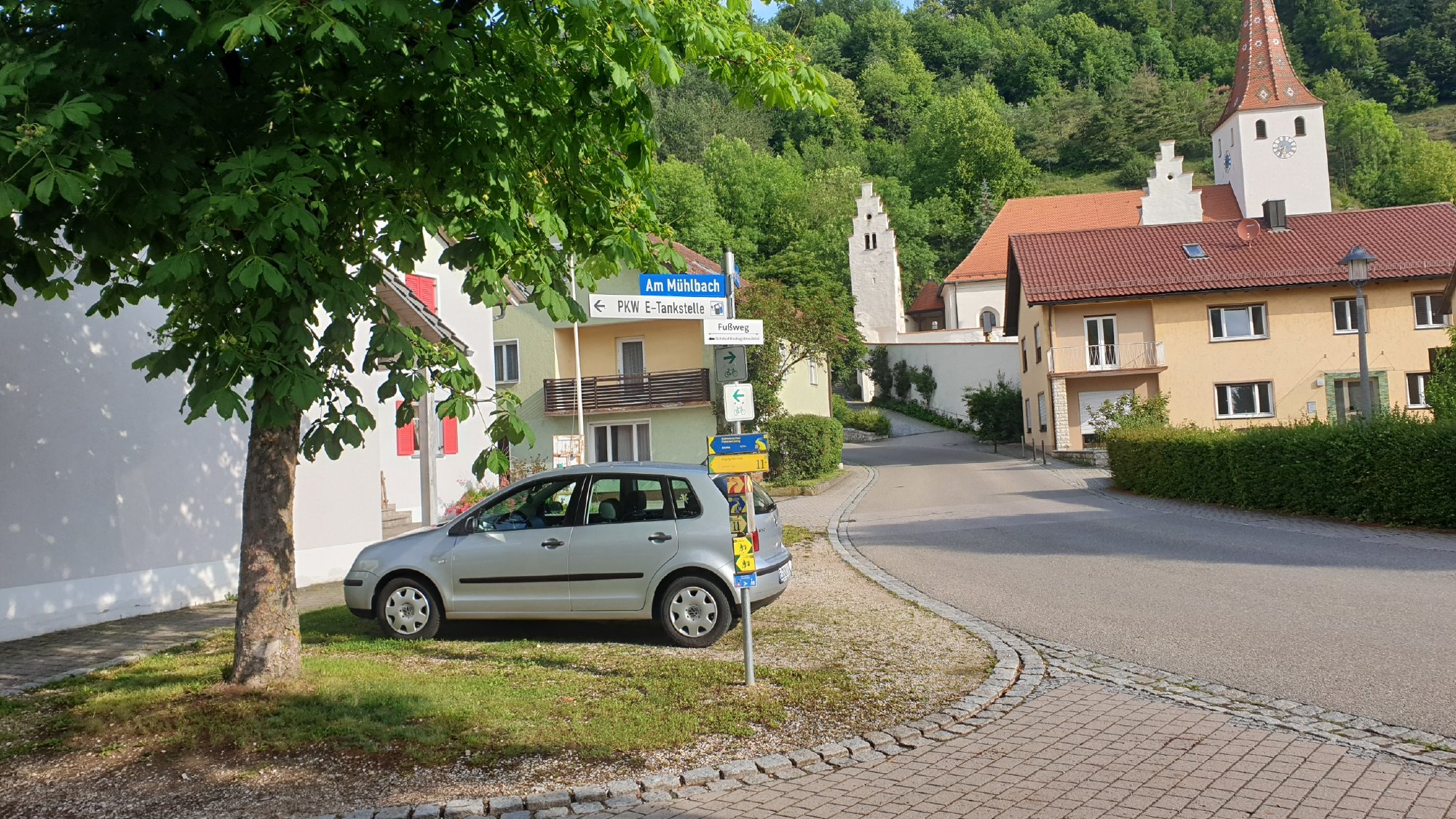 Die Säulen sind vom Schild noch ca 50 m weg, der Verpenner blockiert da nichts.