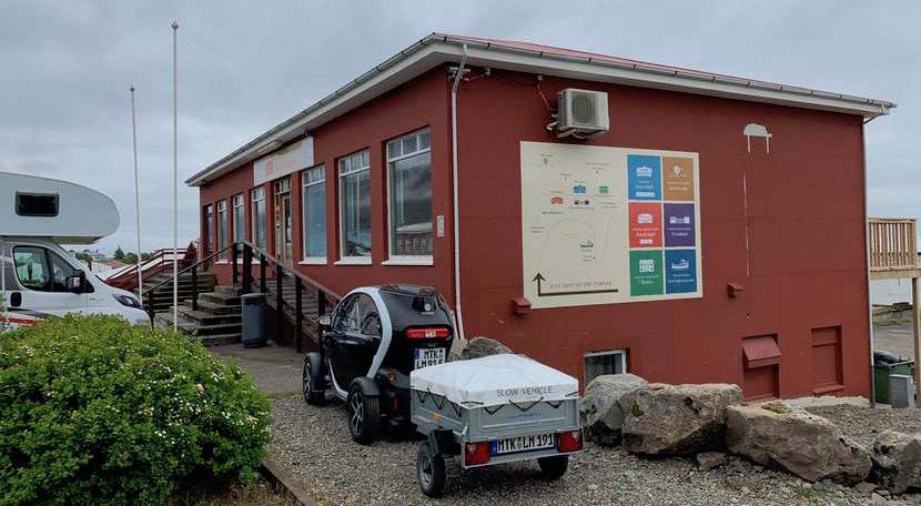 Weiter geht es zur nächsten Ladesäule auf unserem Weg. 30 km, 230 Höhenmeter später kommen wir an einer nichtfunktionierenden Säule an. Die Betreiberin des angrenzenden Campingplatzes erzählt uns, dass die Säulen nicht gewartet werden und wir bei ihr für ISK 700, €5 laden könnten. Das ist das erste mal auf der Reise, dass wir für Strom bezahlen müssen, abgesehen von den offiziellen Ladern. Wir werden es überleben. Wir laden 1,5 kWh und werden das Gefühl nicht los, dass es Absicht war, dass der Lader nicht funktioniert.
