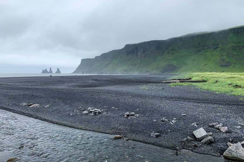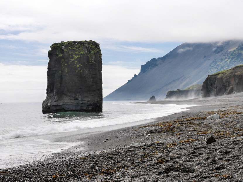 Die ganze Zeit schon kann man linker Hand die Westmännerinseln sehen. Man kann eine Fähre von Landeyjar nach Heimaey nehmen und theoretisch auch den Twizy mitnehmen, Meist ist sie aber in den Sommermonaten ausgebucht. 1973 ist auf Heimaey der Eidfell ausgebrochen. Noch heute ist die Erde am Vulkan handwarm. Wir haben die Westmänner schon 2013 bei perfektem Wetter besucht und verzichten diesmal darauf. Sie sind aber auf jeden Fall sehenswert.