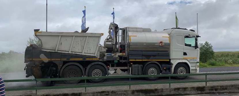 In Kirkjubæjarklaustur werden gerade die Straßen aufgehübscht und es erklärt, warum wir so massive Probleme mit Steinschlag haben.
