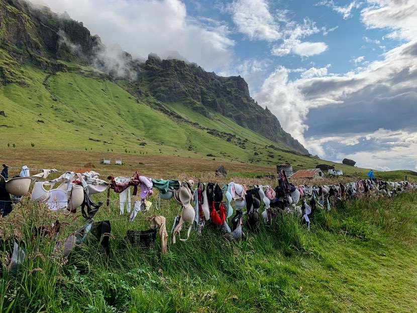 Irgendwelche Isländer haben im Rausch BHs geklaut und aufgehängt. Mittlerweile machen da wohl auch Touristen mit und so ist der "Bra Fence" etwas, an dem man nicht vorbei kommen kann.