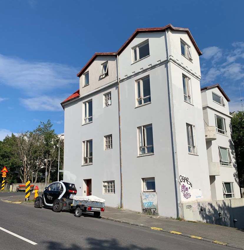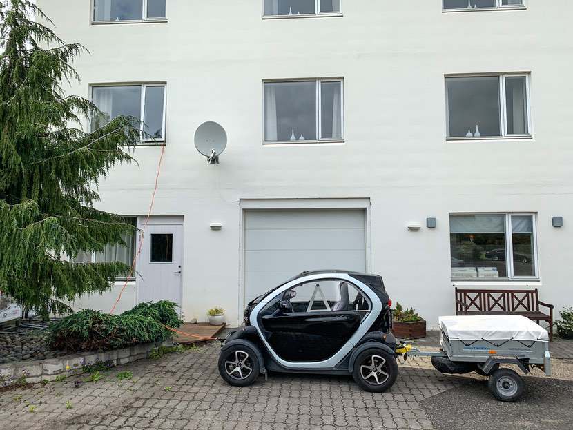 Danach geht es ins Guest House. Das ist ein altes Mehrfamilienhaus aus den 20er oder 30er Jahren des letzten Jahrhunderts, in dem einzelne Wohnungen zu Guest Houses umgebaut wurden. Es gibt 3 Zimmer, ein Bad und eine Küche mit Essplatz. Nicht besonders toll, aber es liegt nur wenige Meter von der Hallgrímskirkja entfernt. Den Twizy können wir vor der Tür auf der Straße parken. Laden geht hier leider nicht. Da müssen wir uns etwas überlegen.