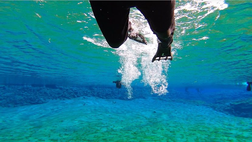 Wir sind eine kleine Gruppe aus 6 Personen. Irgendwann ist die Einweisung beendet und wir gehen nach und nach ins Wasser und lassen uns von der Strömung langsam treiben. Durch den Anzug schwimmen wir auf dem Wasser wie ein Ballon.